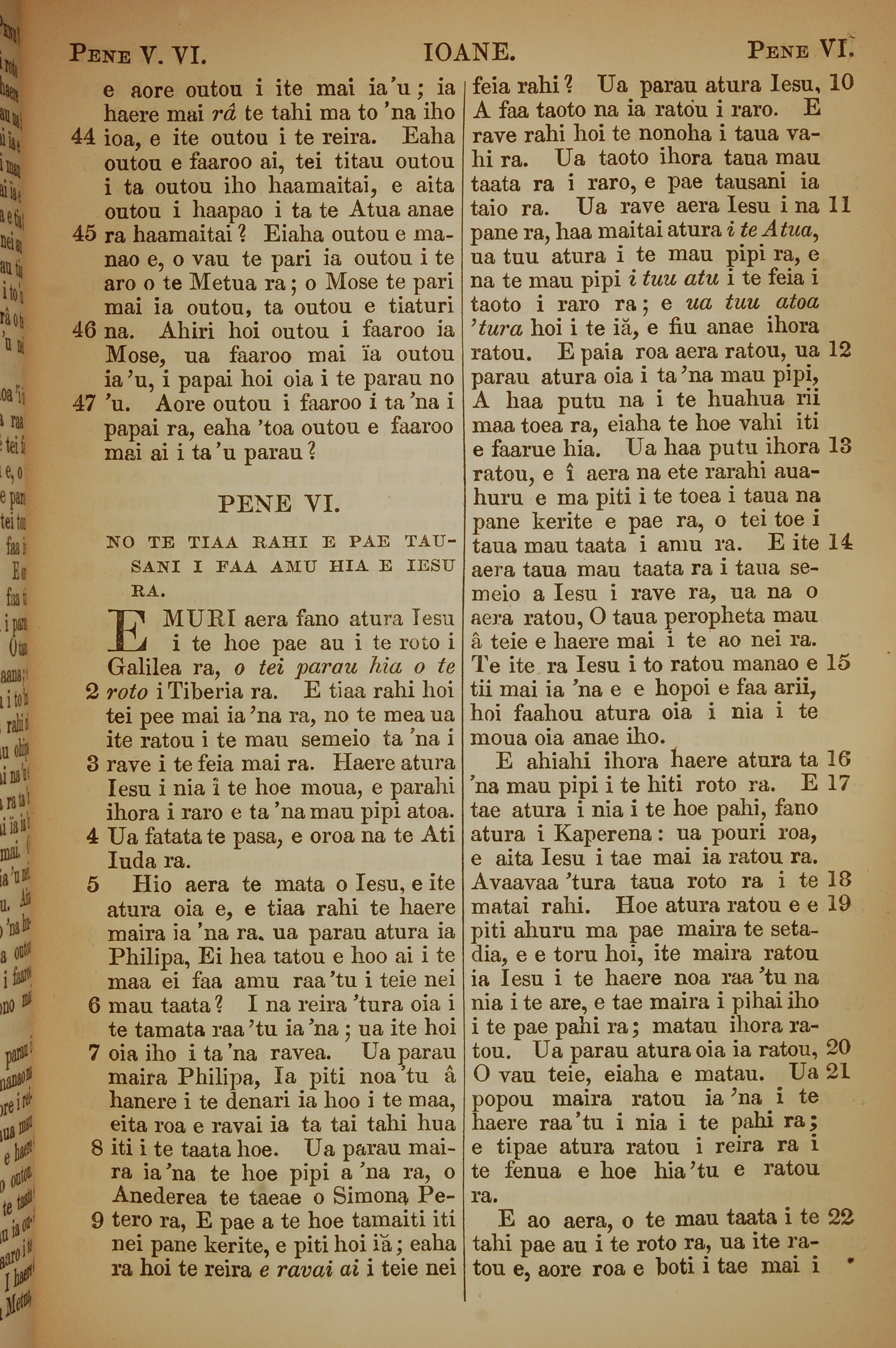 1853年塔希提語新約全書 約翰福音 5 章 44 節到 6 章 22 節