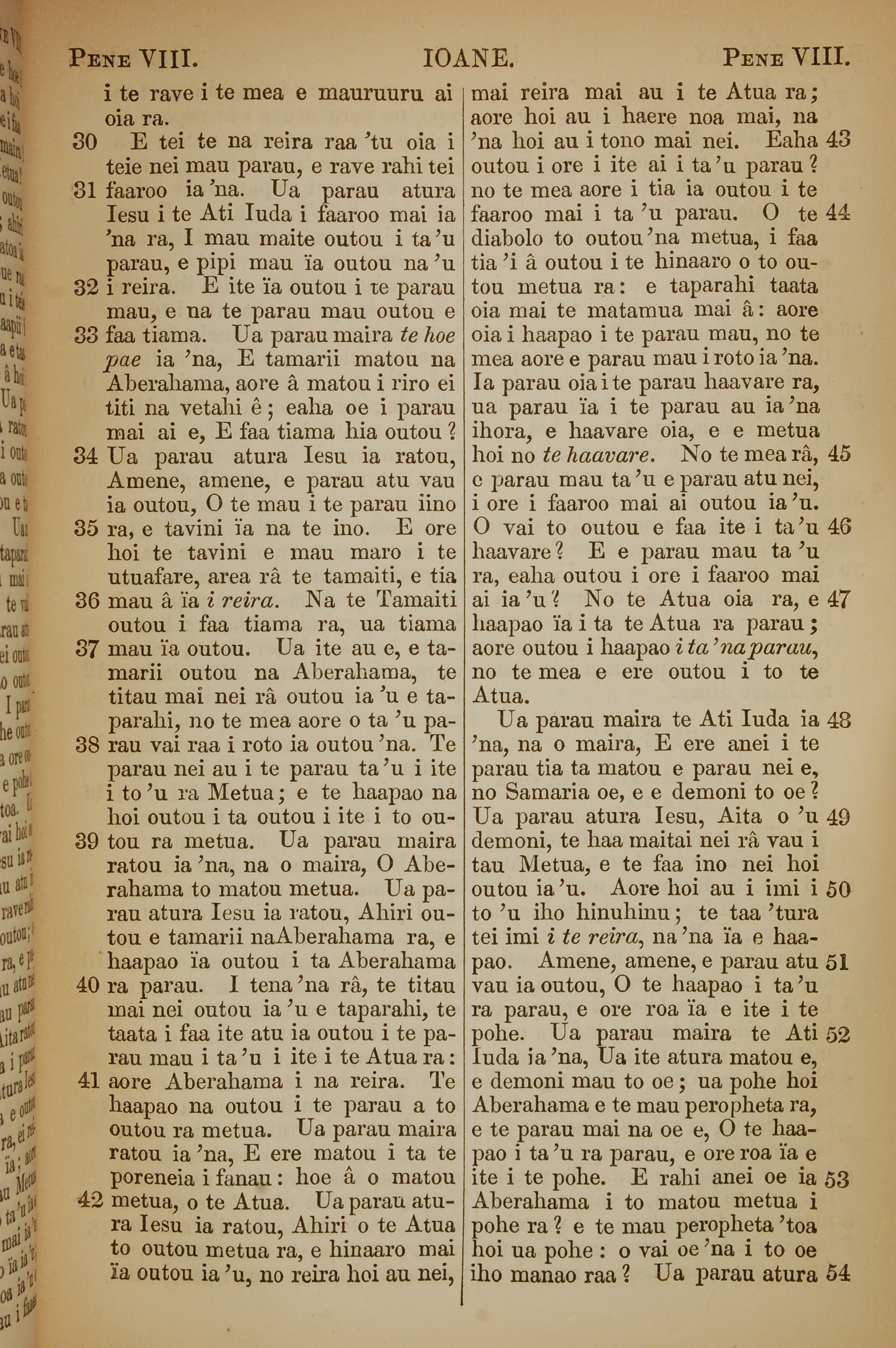 1853年塔希提語新約全書 約翰福音 8 章 30 節到 8 章 54 節