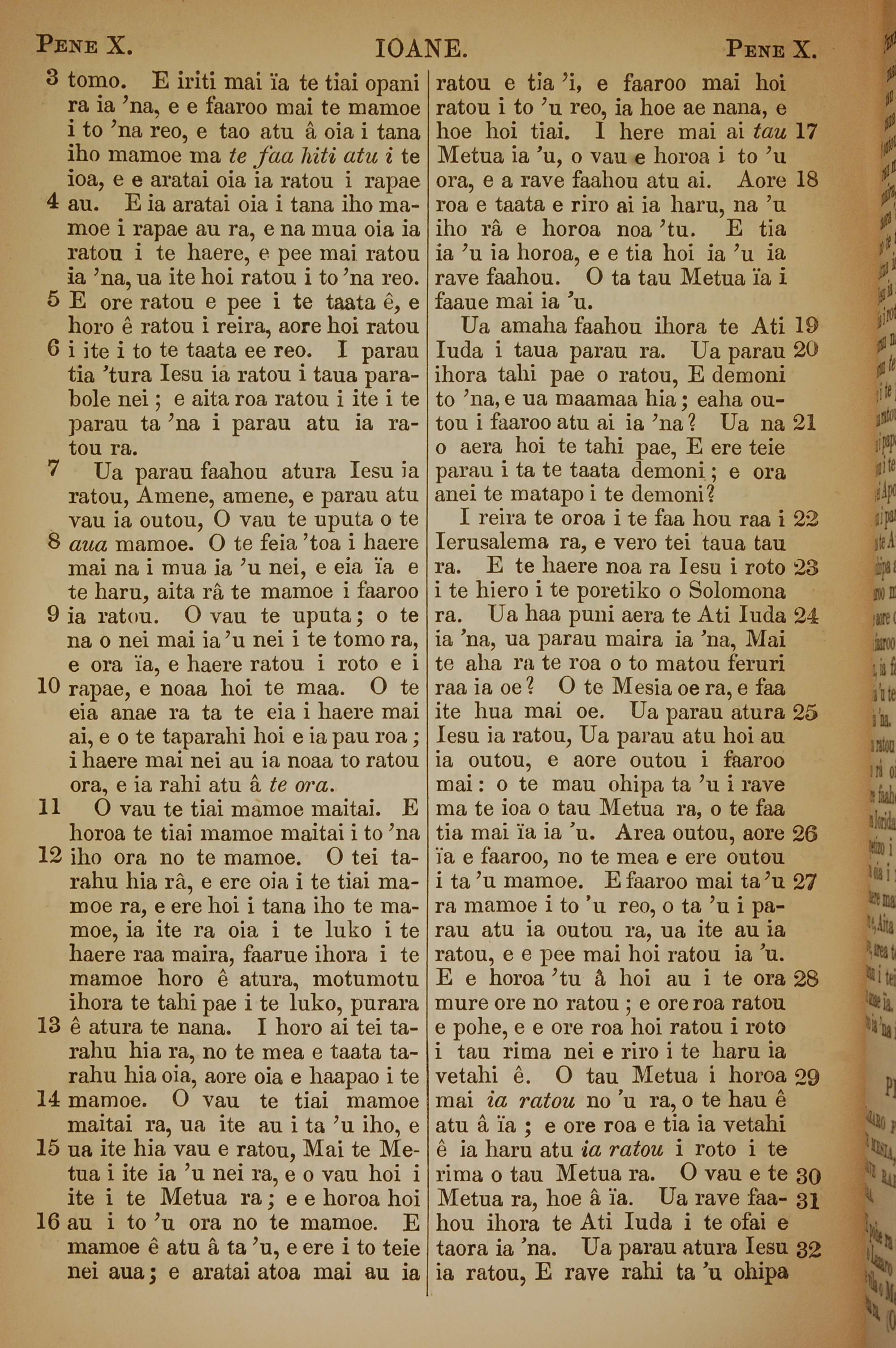1853年塔希提語新約全書 約翰福音 10 章 3 節到 10 章 32 節