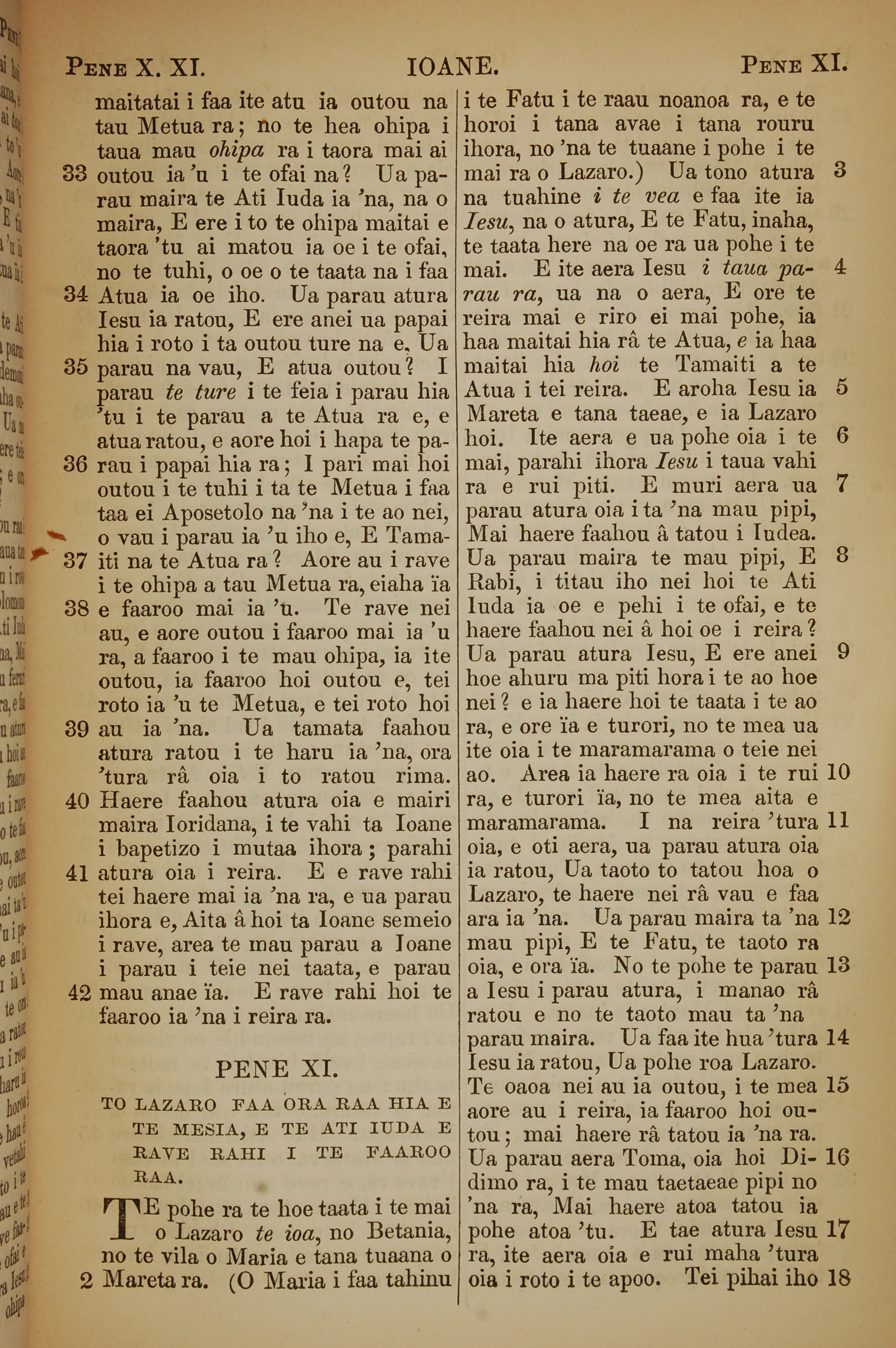 1853年塔希提語新約全書 約翰福音 10 章 33 節到 11 章 18 節