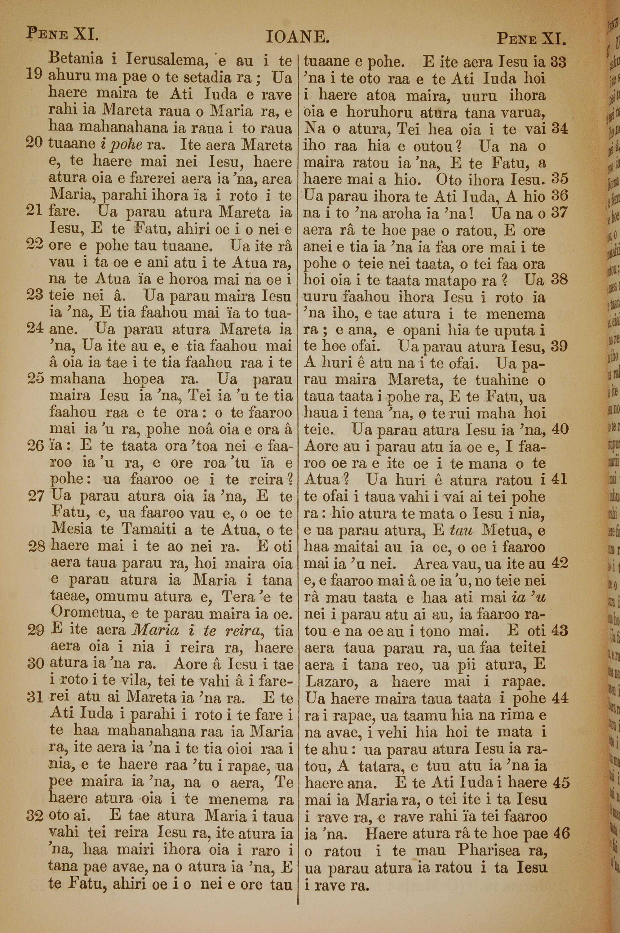 1853年塔希提語新約全書 約翰福音 11 章 19 節到 11 章 46 節