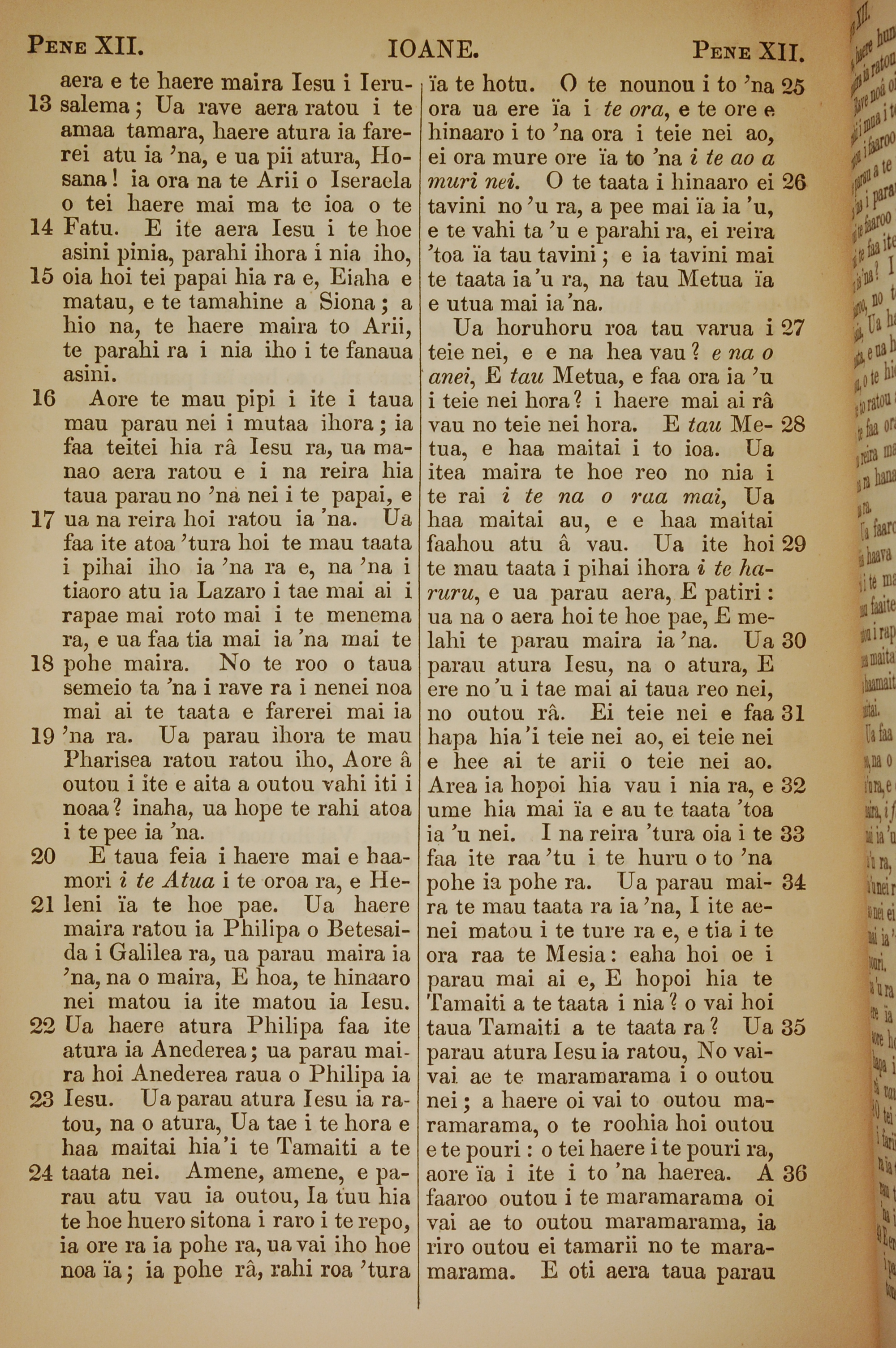1853年塔希提語新約全書 約翰福音 12 章 13 節到 12 章 36 節
