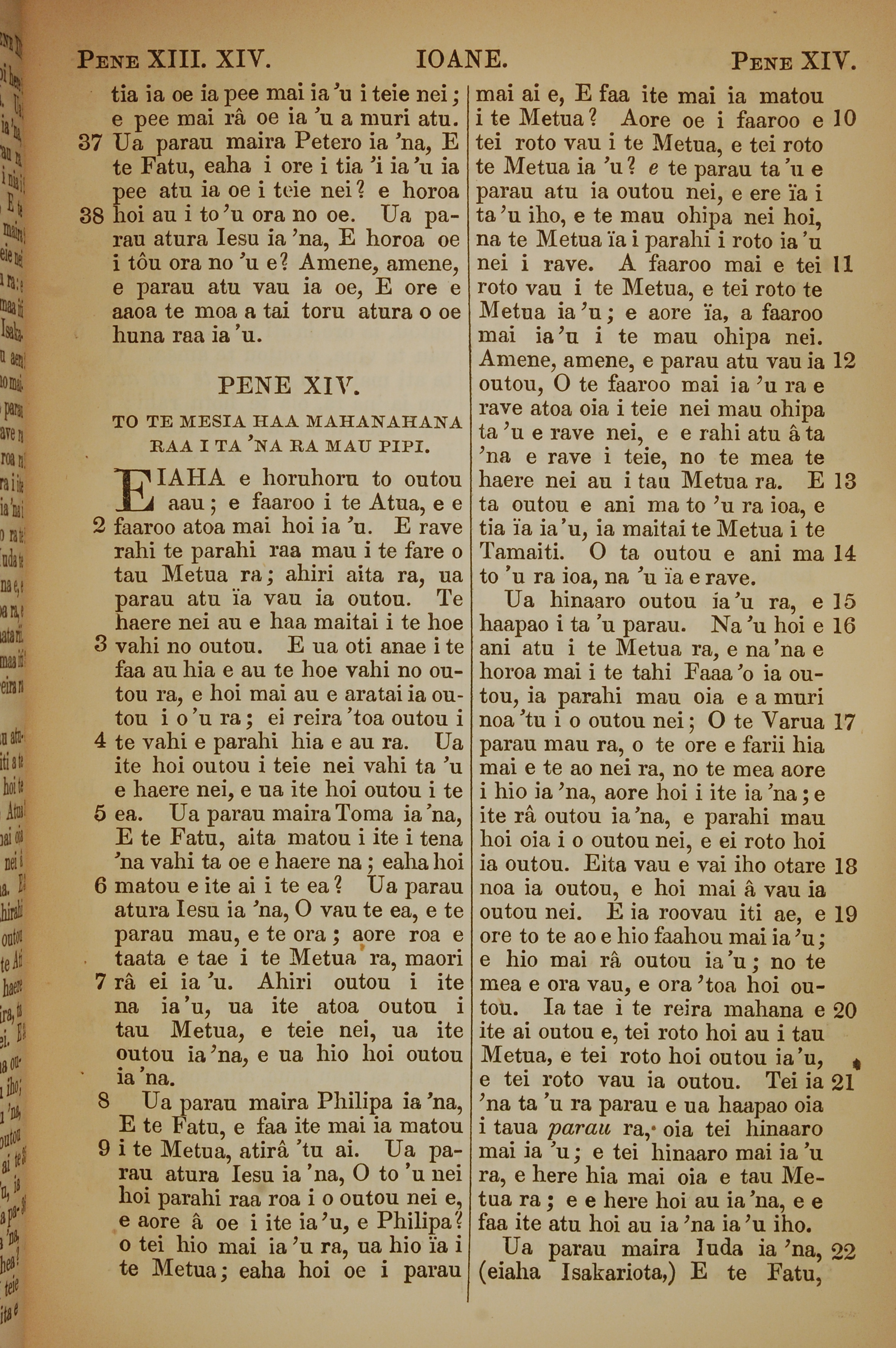 1853年塔希提語新約全書 約翰福音 13 章 37 節到 14 章 22 節