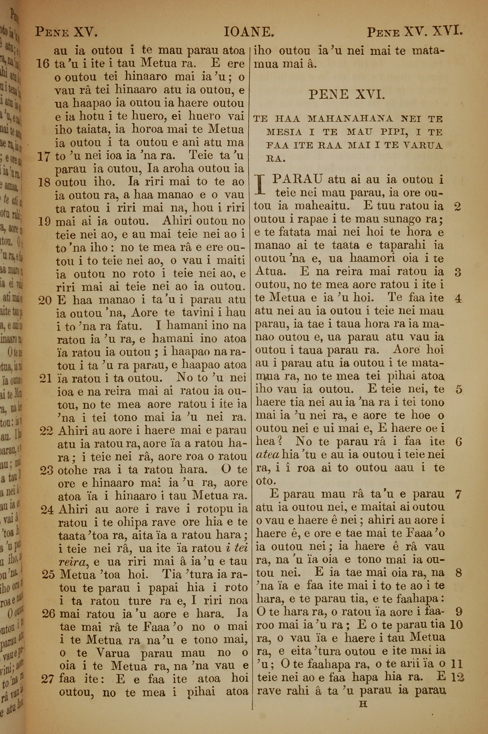 1853年塔希提語新約全書 約翰福音 15 章 16 節到 16 章 12 節
