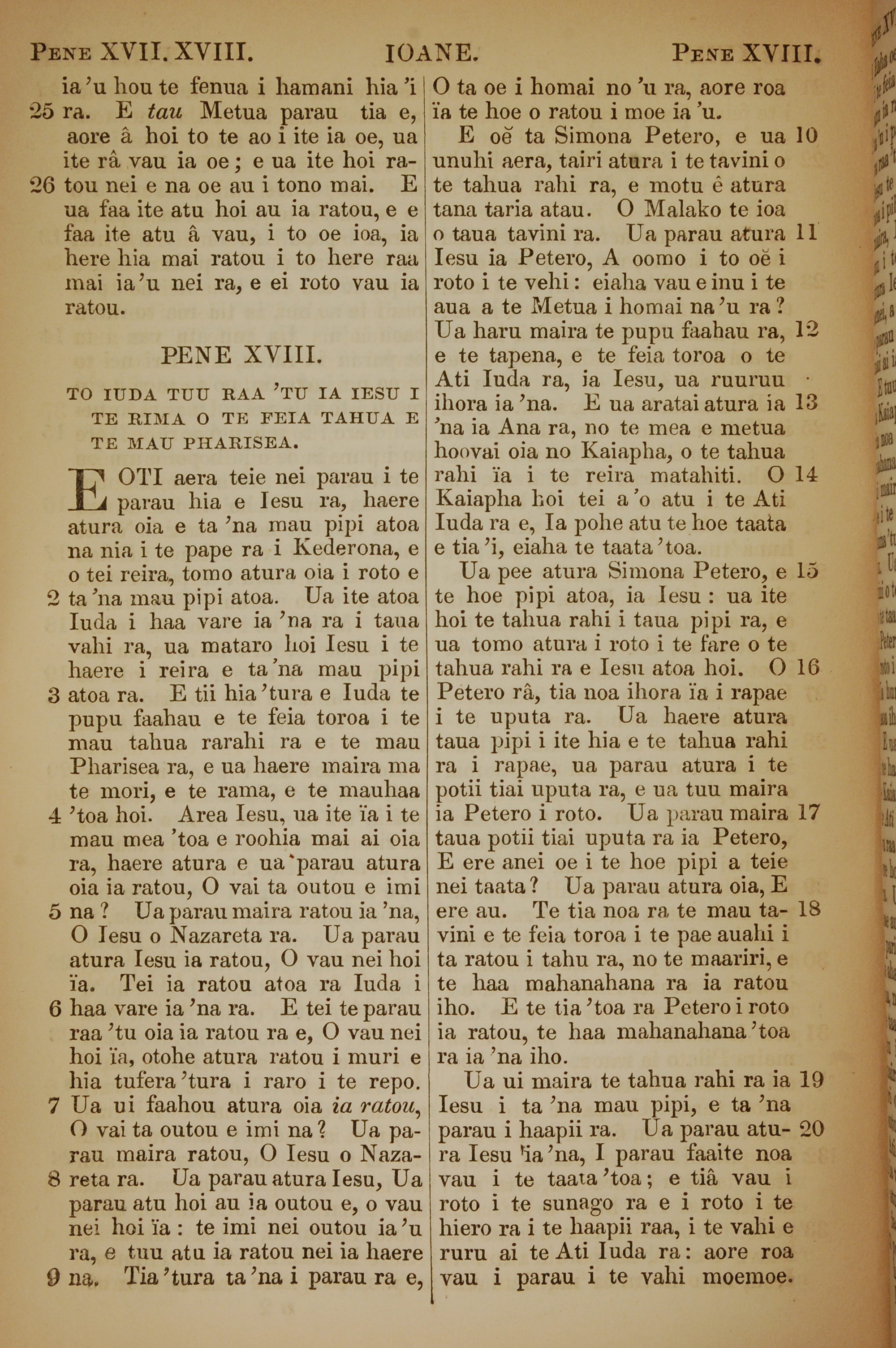 1853年塔希提語新約全書 約翰福音 17 章 25 節到 18 章 20 節