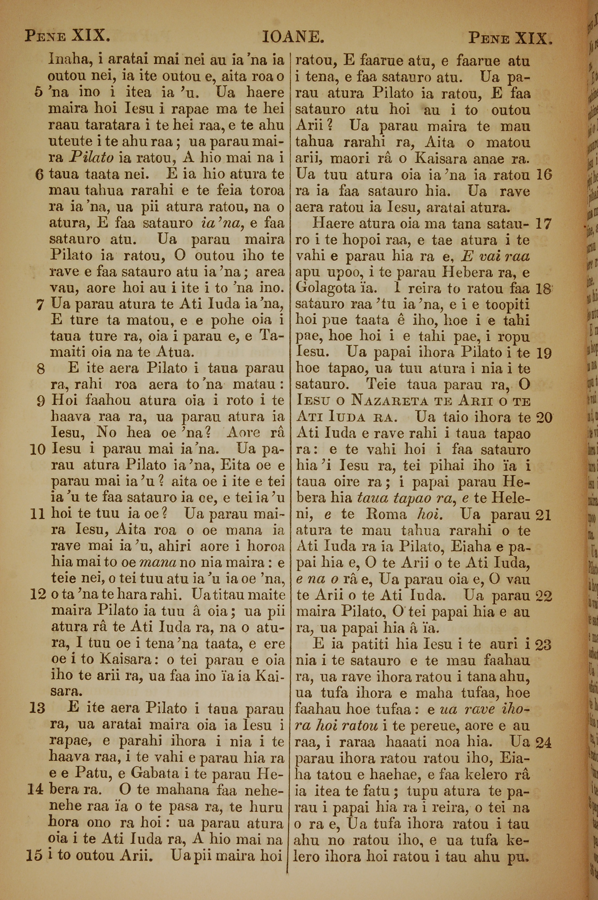 1853年塔希提語新約全書 約翰福音 19 章 5 節到 19 章 24 節