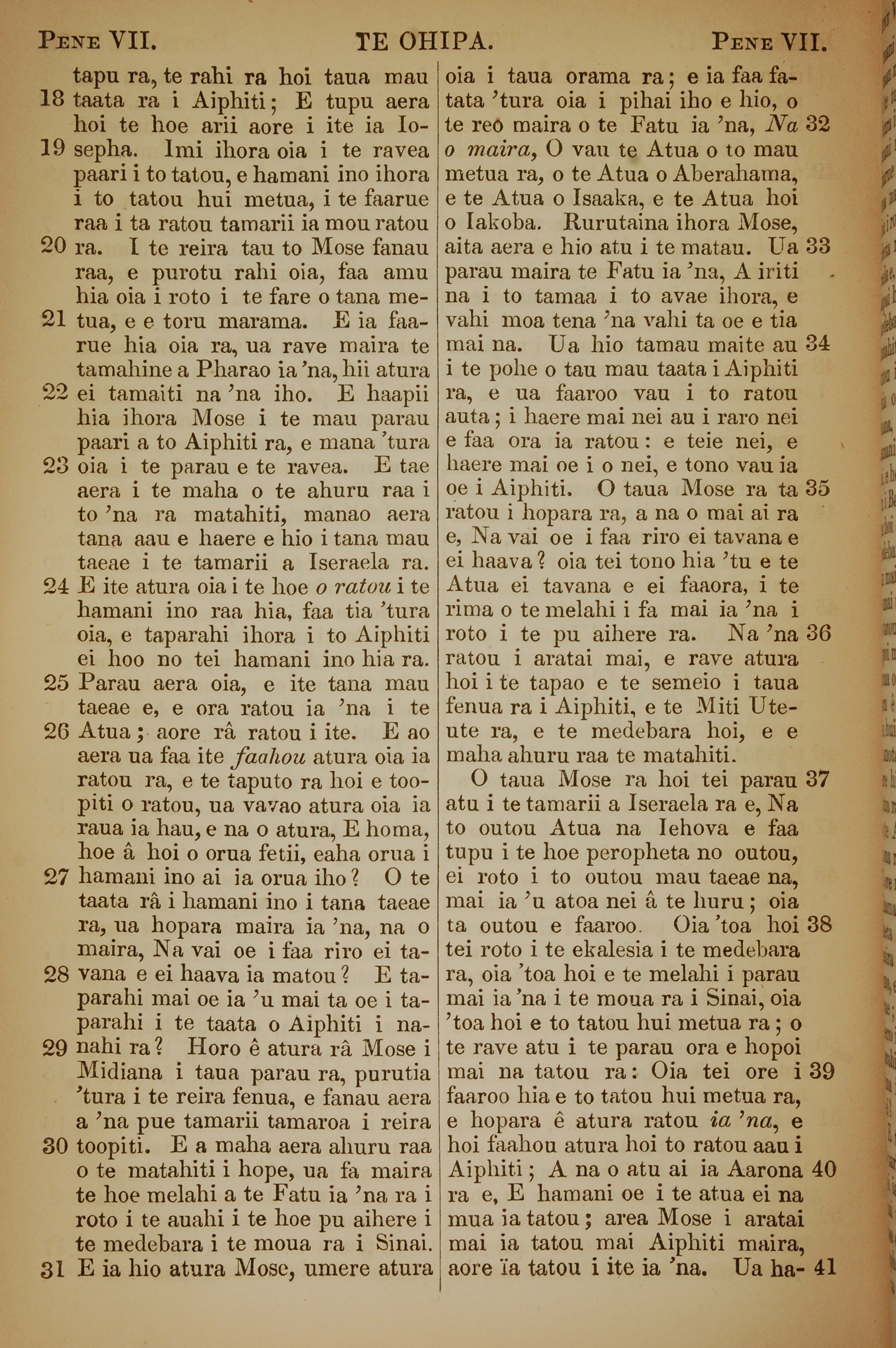 1853年塔希提語新約全書 使徒行傳 7 章 18 節到 7 章 41 節
