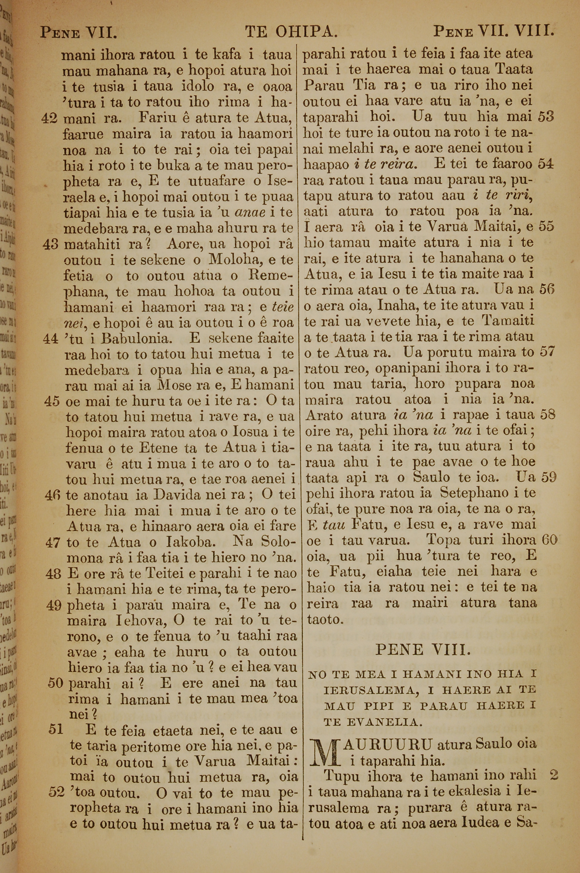 1853年塔希提語新約全書 使徒行傳 7 章 42 節到 8 章 1 節