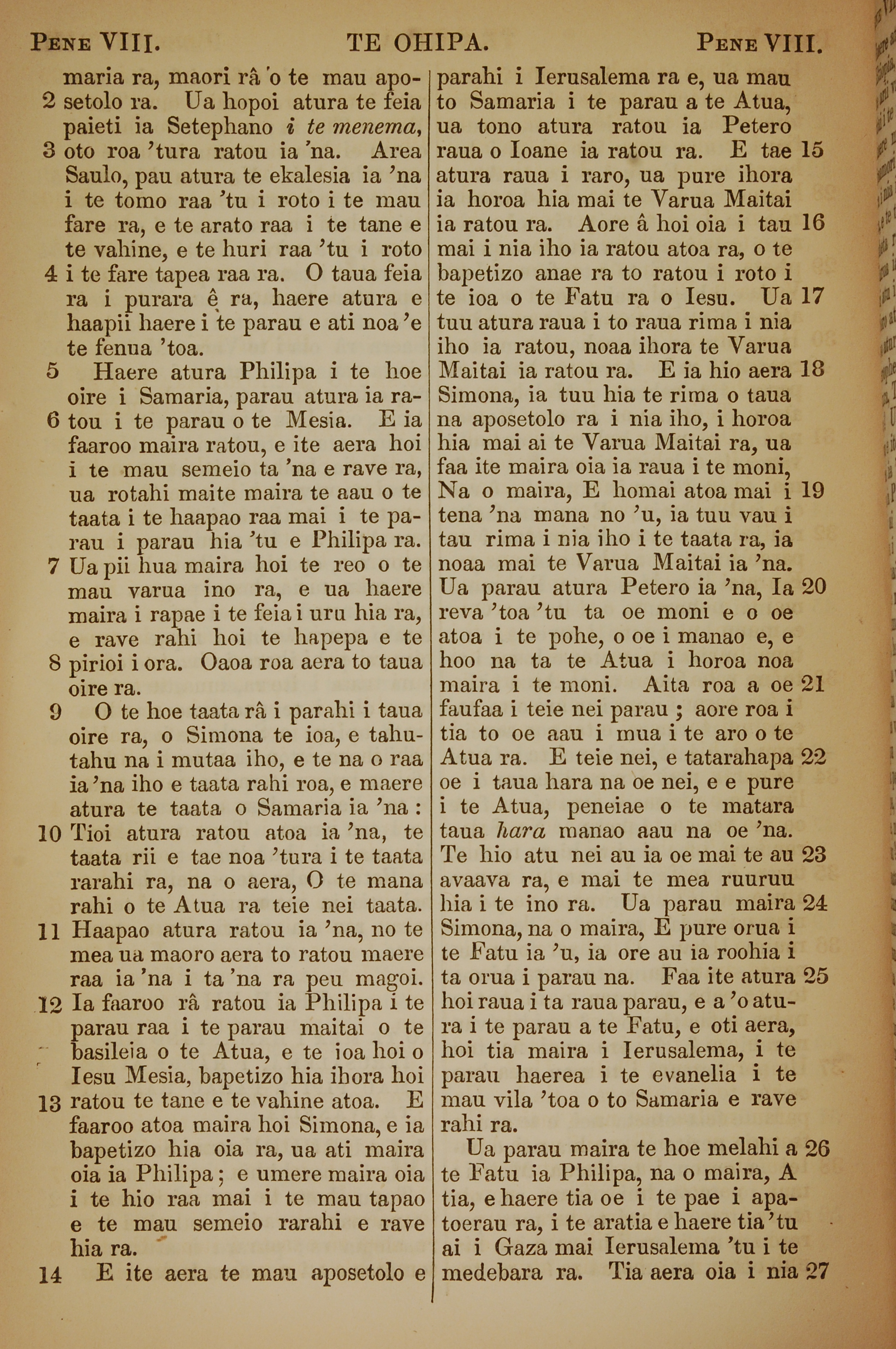 1853年塔希提語新約全書 使徒行傳 8 章 2 節到 8 章 27 節
