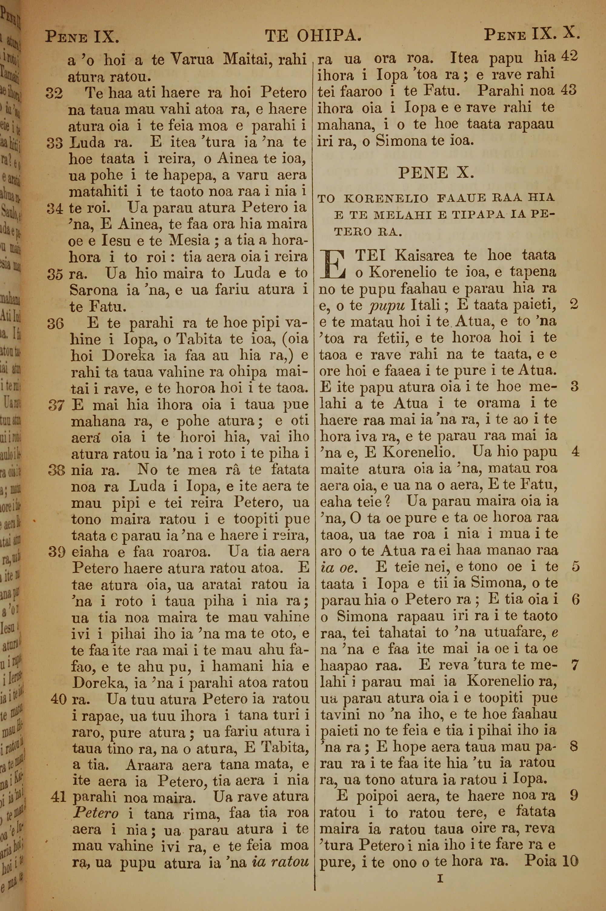 1853年塔希提語新約全書 使徒行傳 9 章 32 節到 10 章 10 節