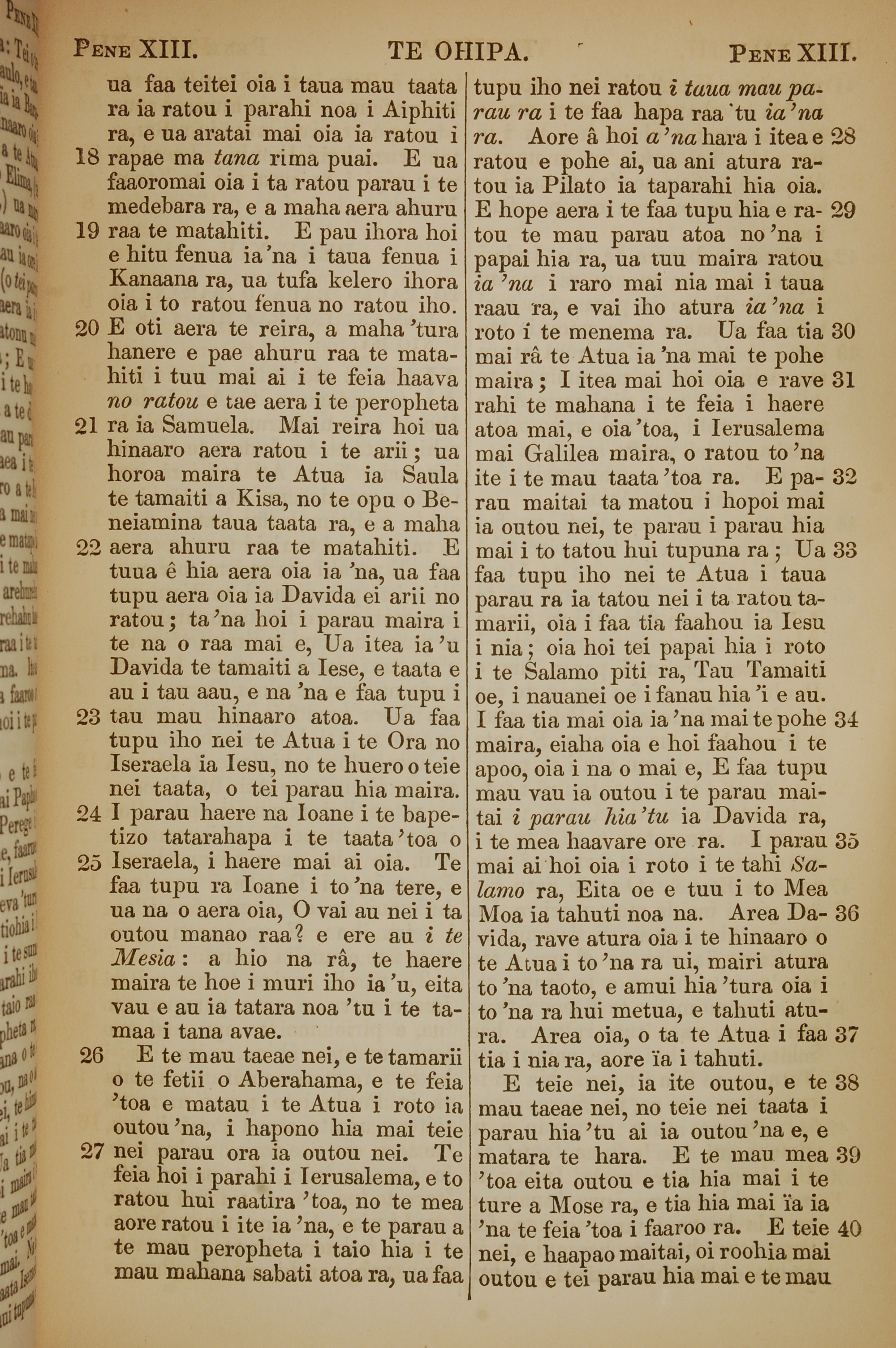 1853年塔希提語新約全書 使徒行傳 13 章 18 節到 13 章 40 節