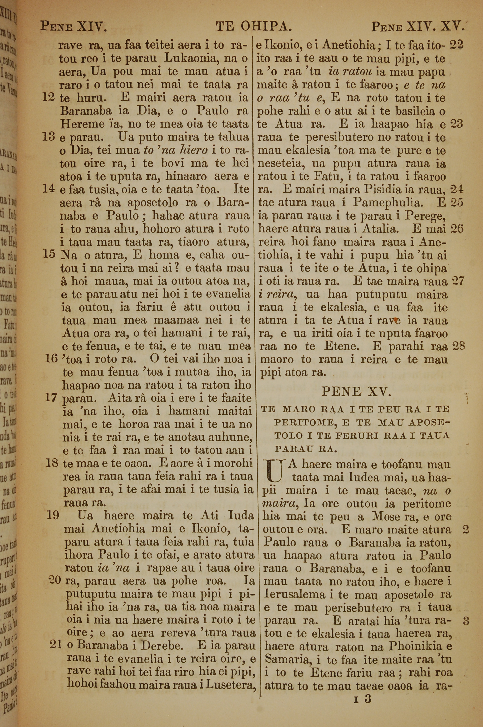 1853年塔希提語新約全書 使徒行傳 14 章 12 節到 15 章 3 節