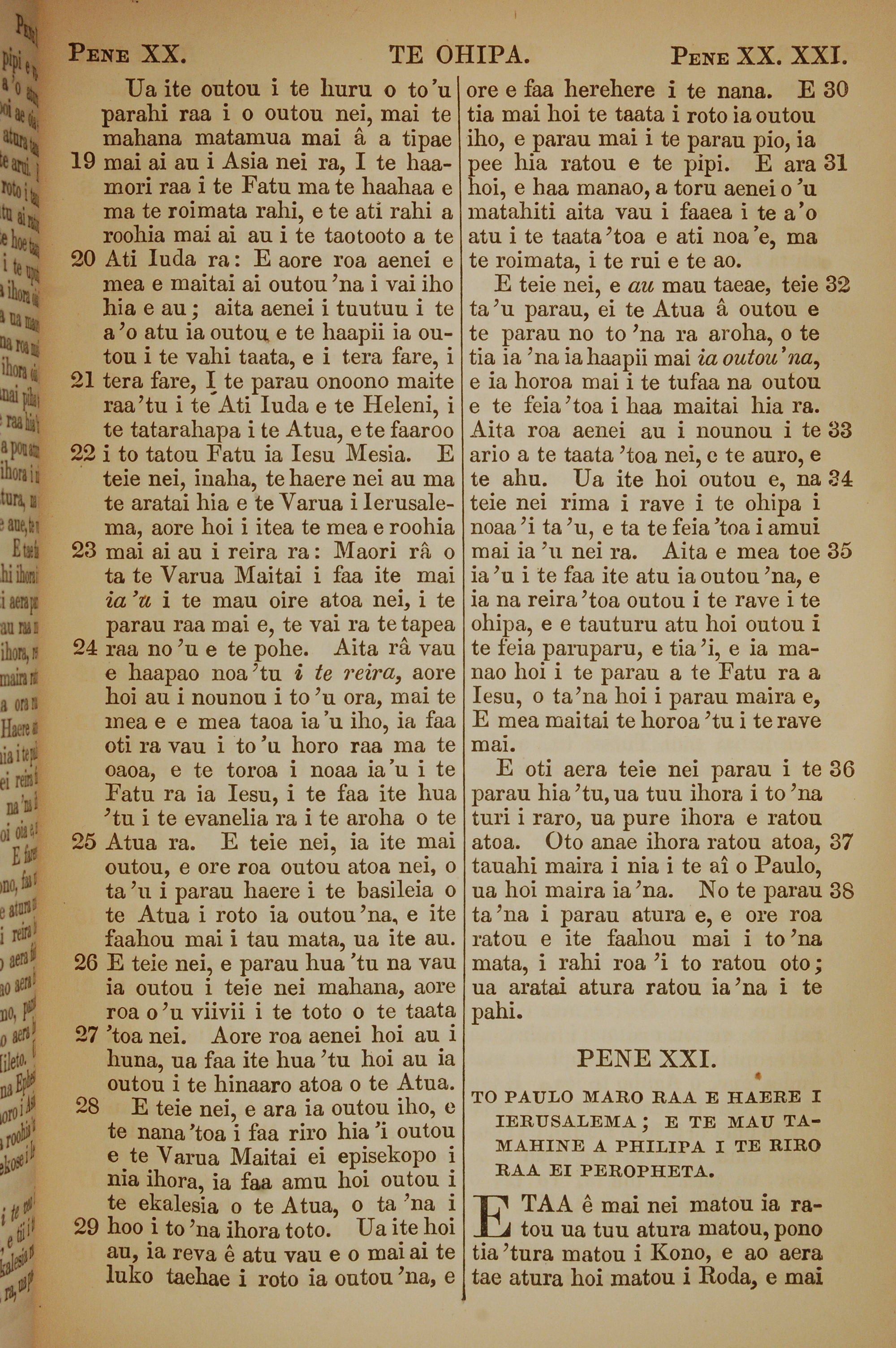 1853年塔希提語新約全書 使徒行傳 20 章 19 節到 21 章 1 節