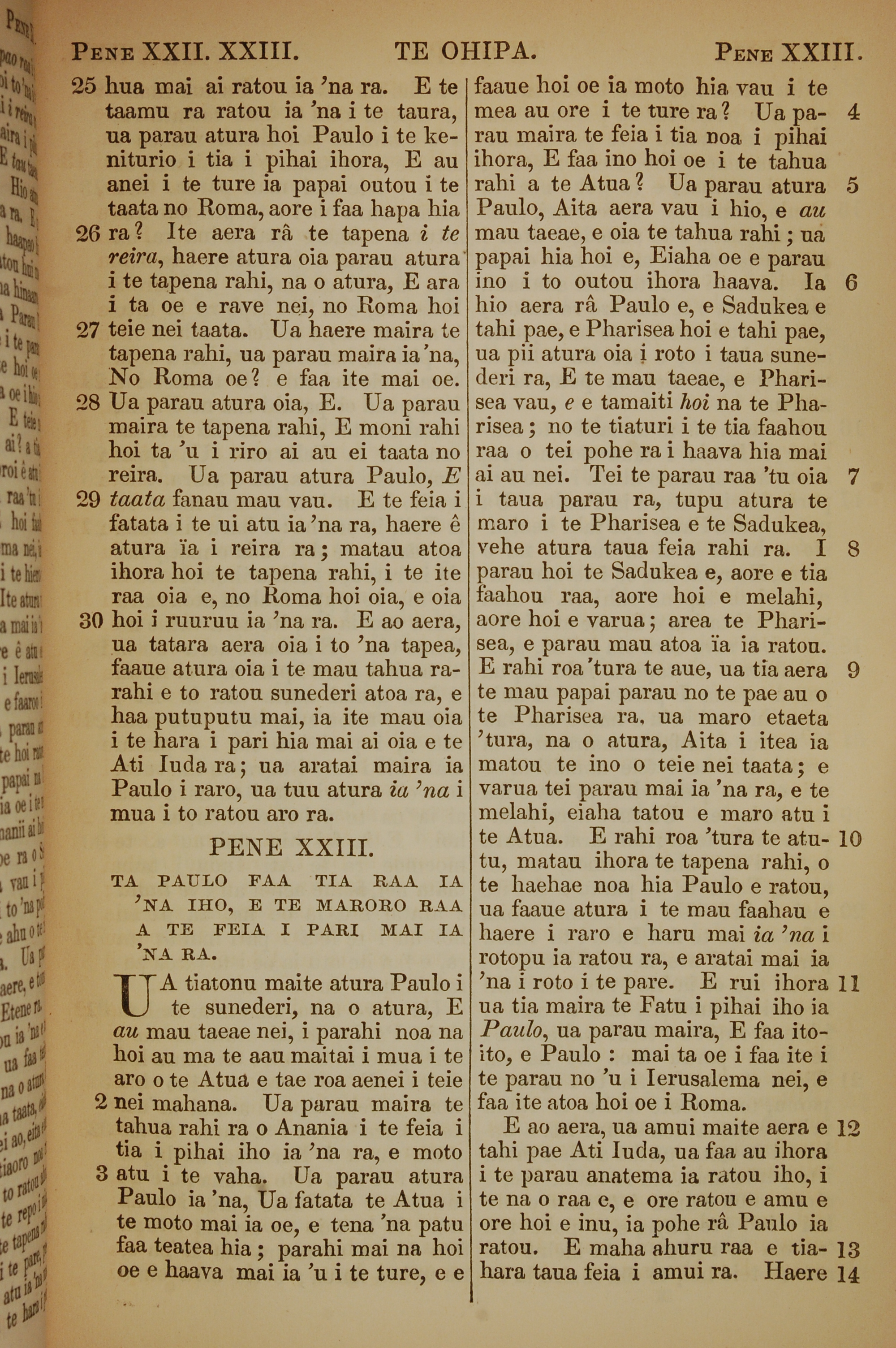 1853年塔希提語新約全書 使徒行傳 22 章 25 節到 23 章 14 節