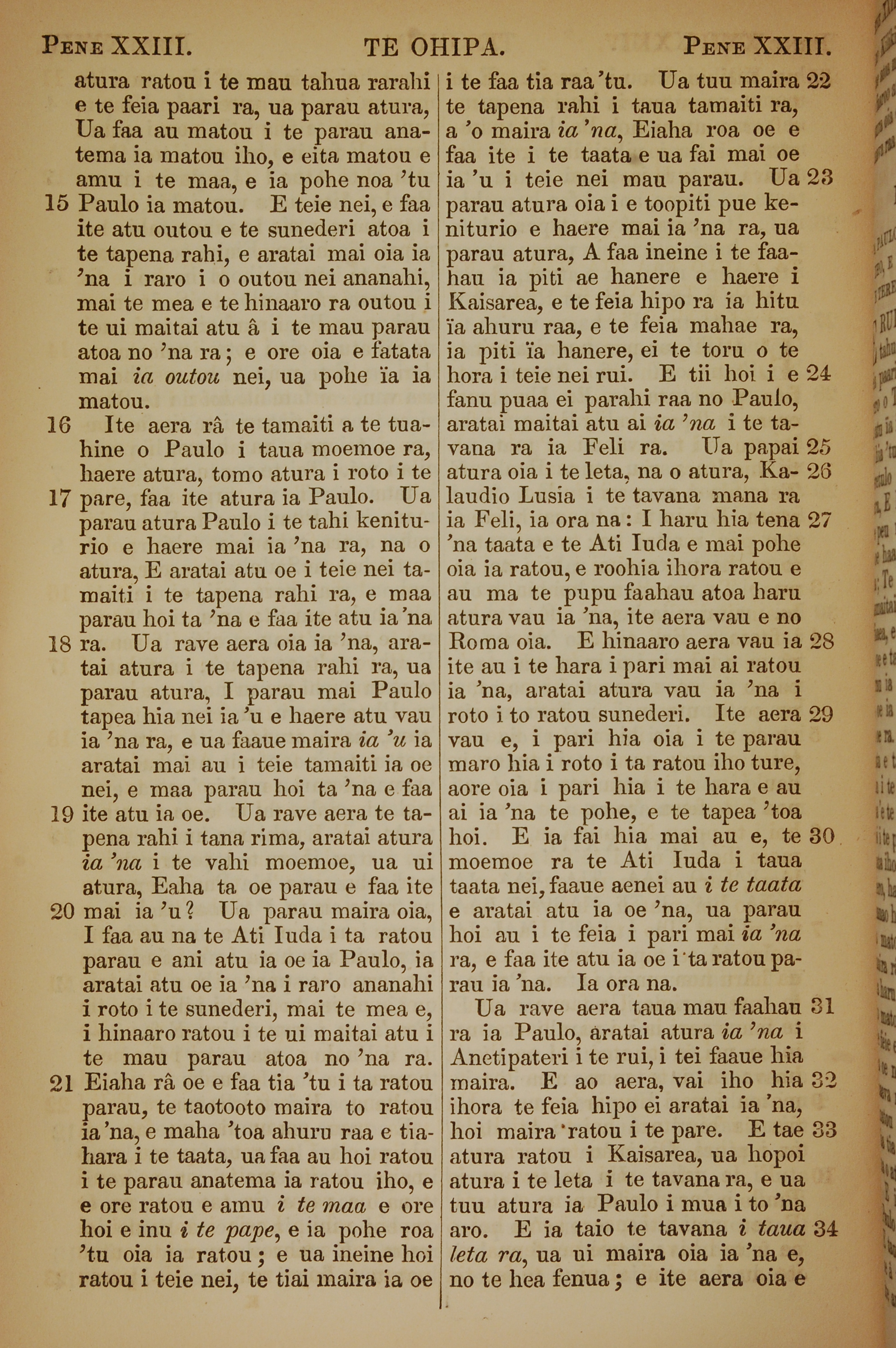 1853年塔希提語新約全書 使徒行傳 23 章 15 節到 23 章 34 節