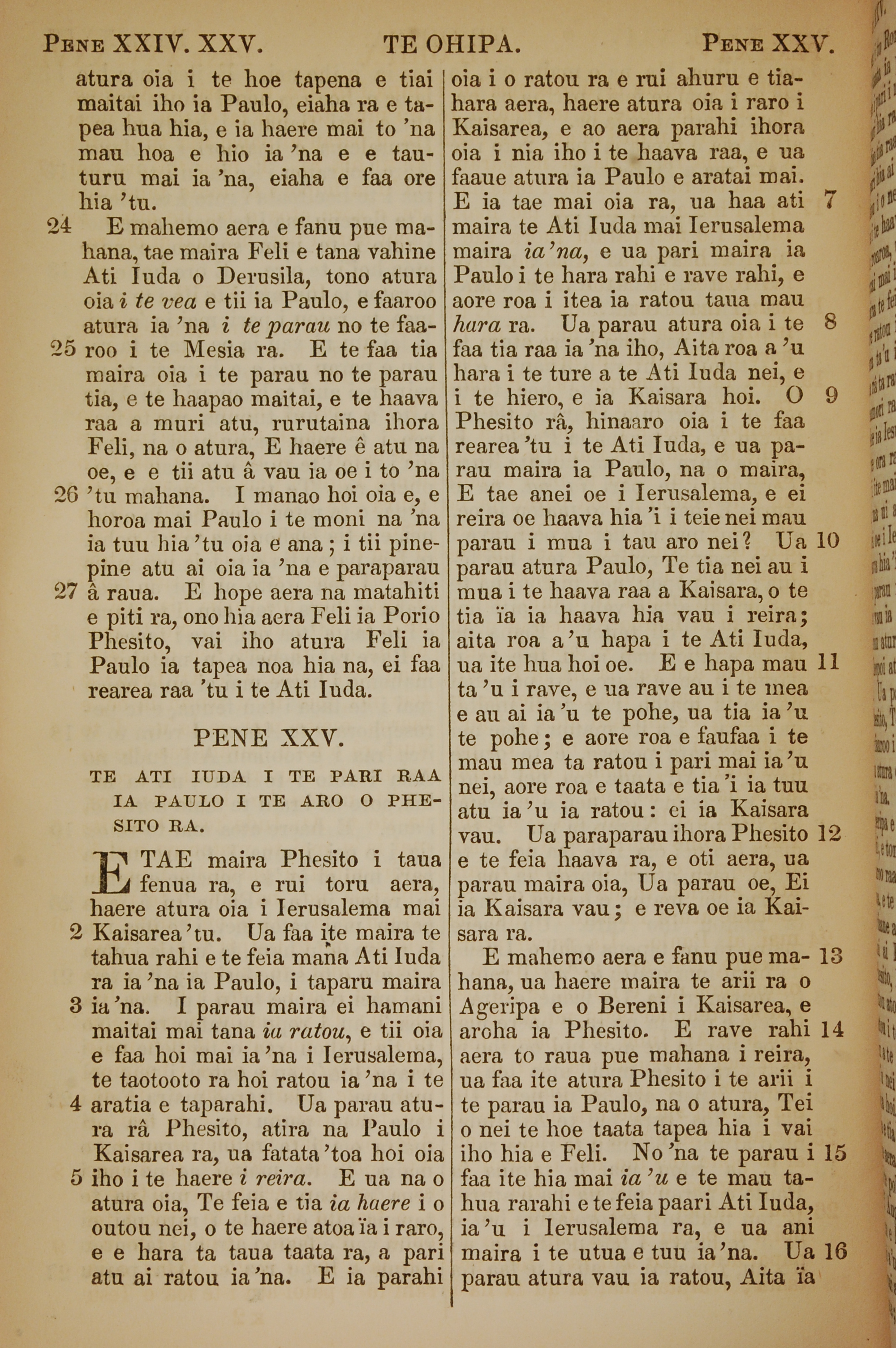 1853年塔希提語新約全書 使徒行傳 24 章 24 節到 25 章 16 節