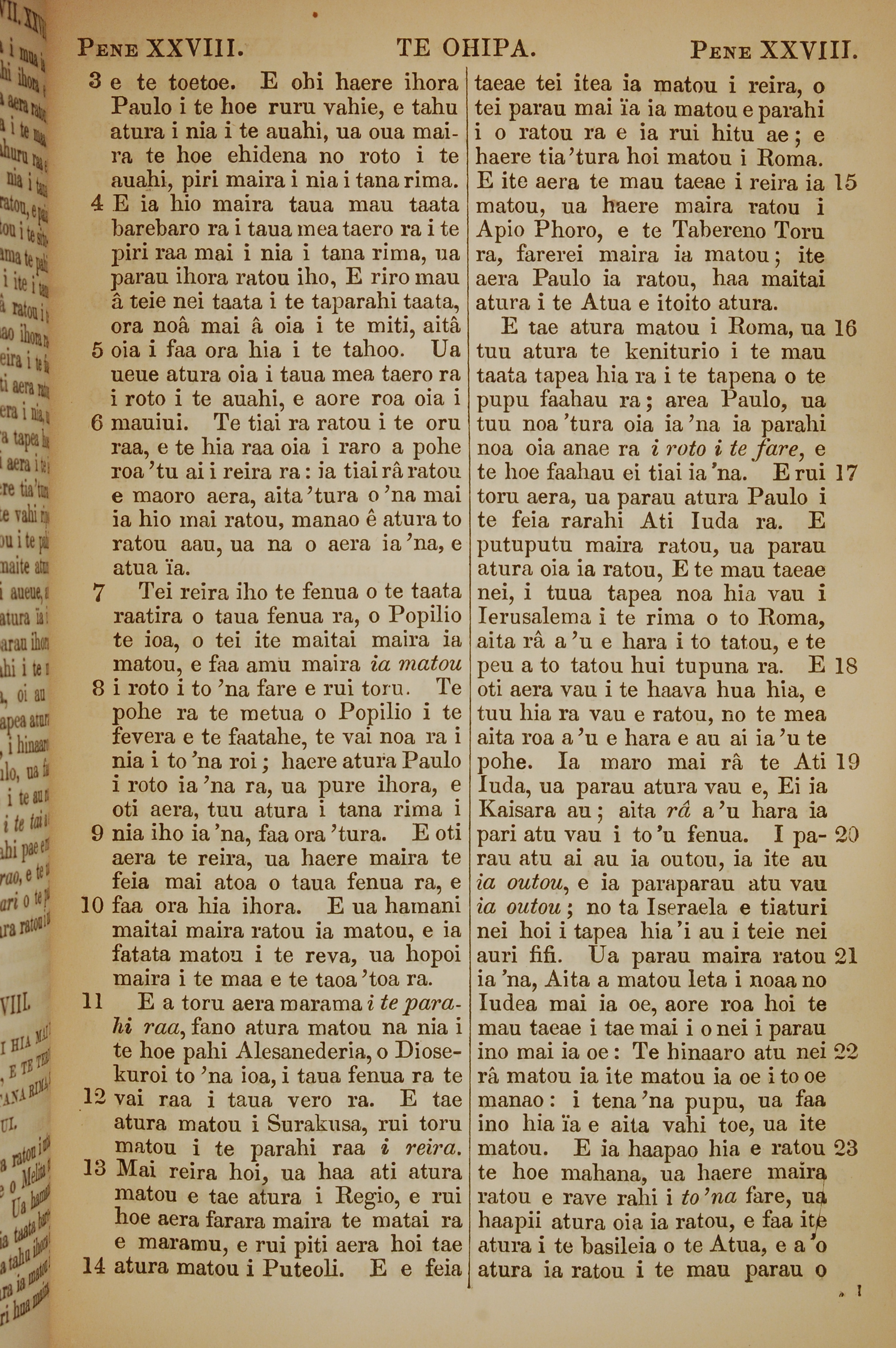 1853年塔希提語新約全書 使徒行傳 28 章 3 節到 28 章 23 節