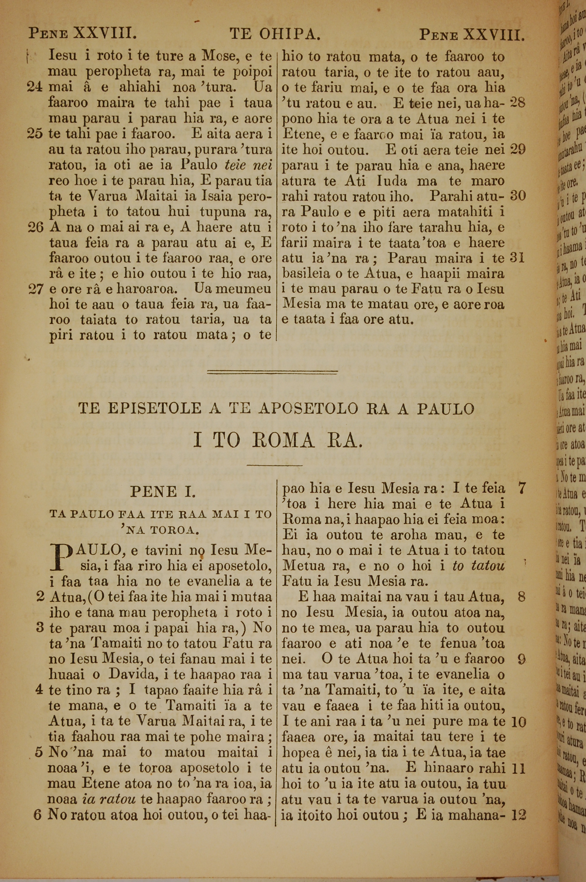 1853年塔希提語新約全書 使徒行傳 28 章 24 節到 28 章 31 節