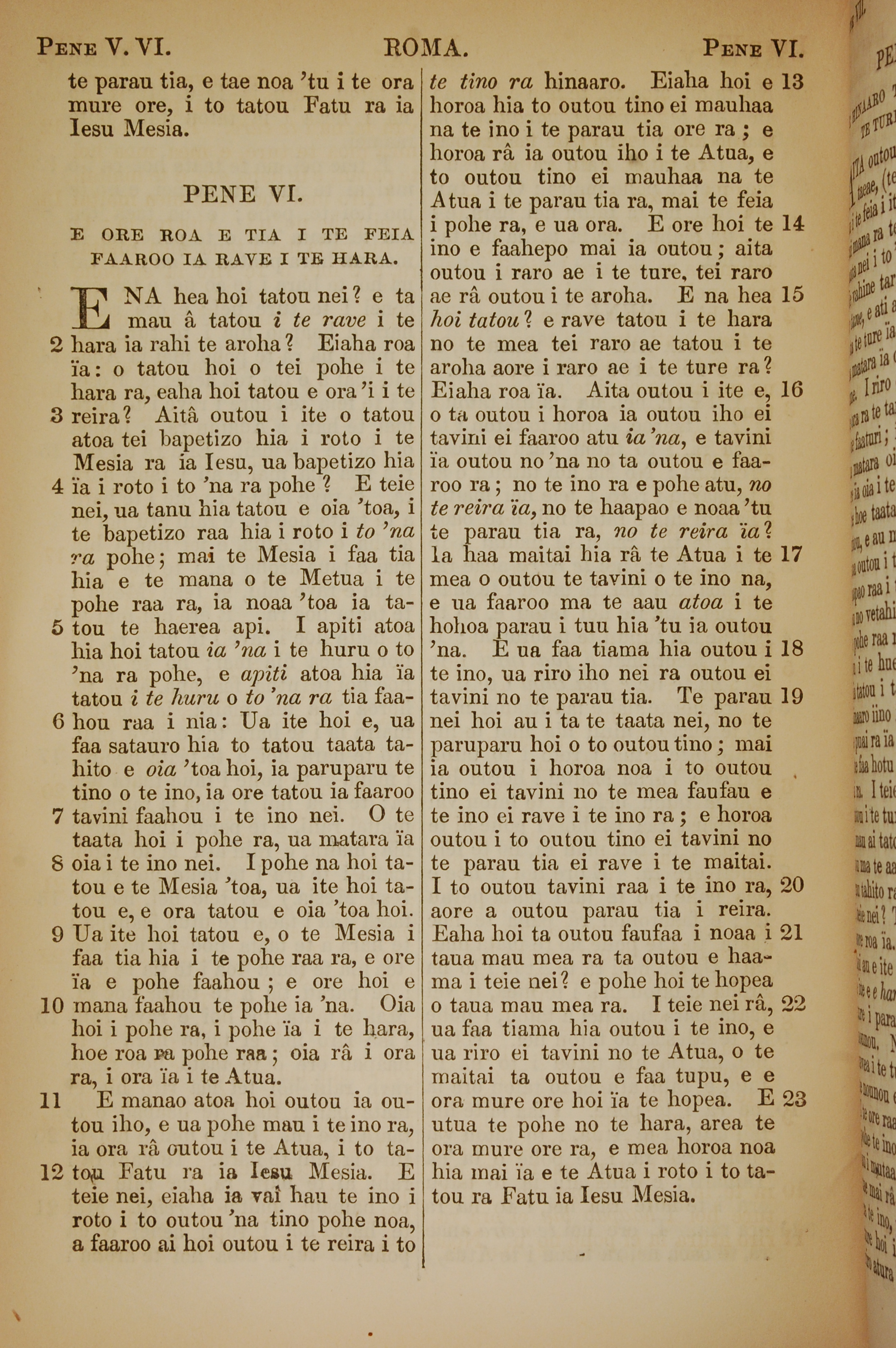 1853年塔希提語新約全書 羅馬書 6 章 1 節到 6 章 23 節