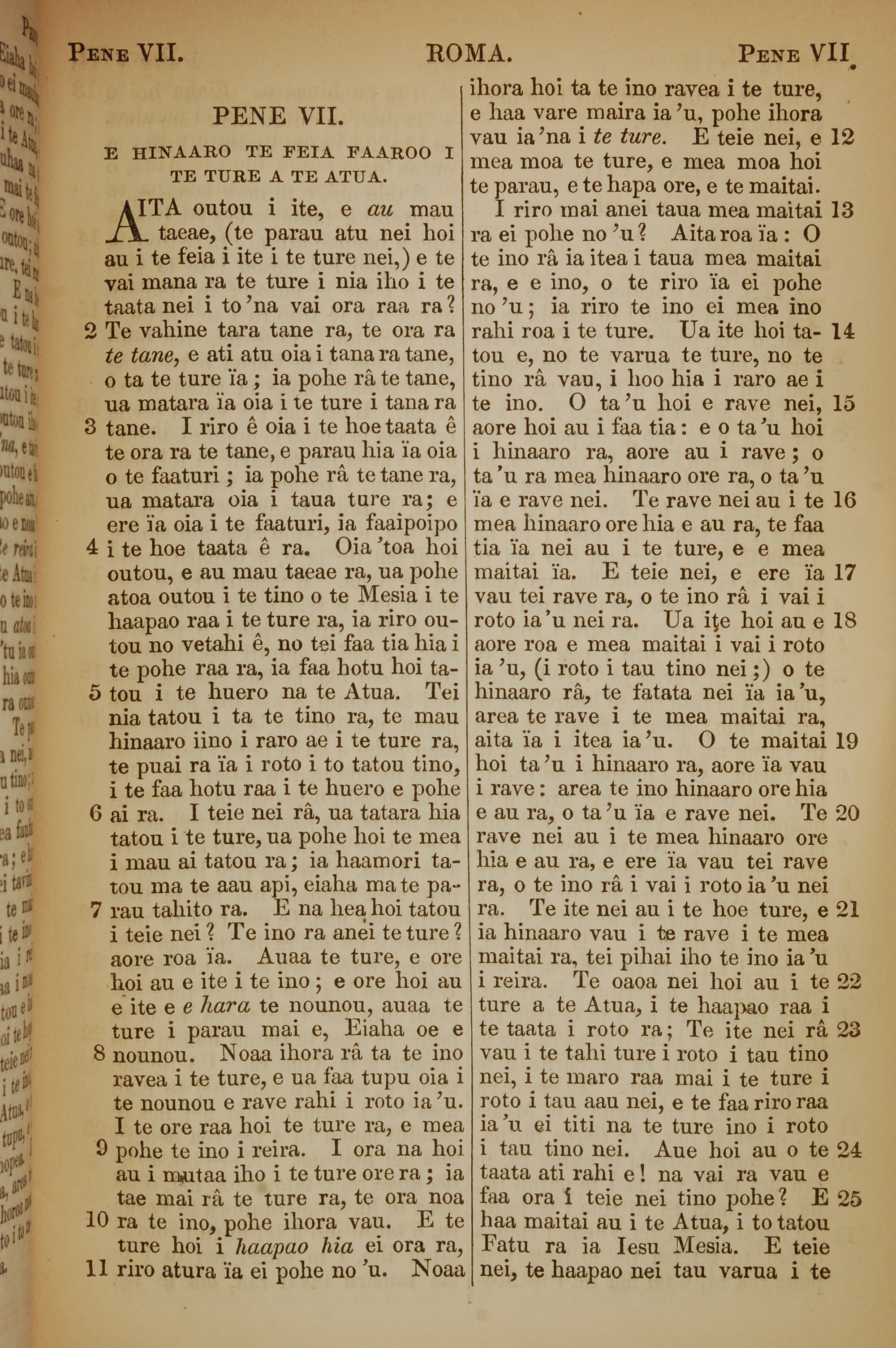 1853年塔希提語新約全書 羅馬書 7 章 1 節到 7 章 25 節