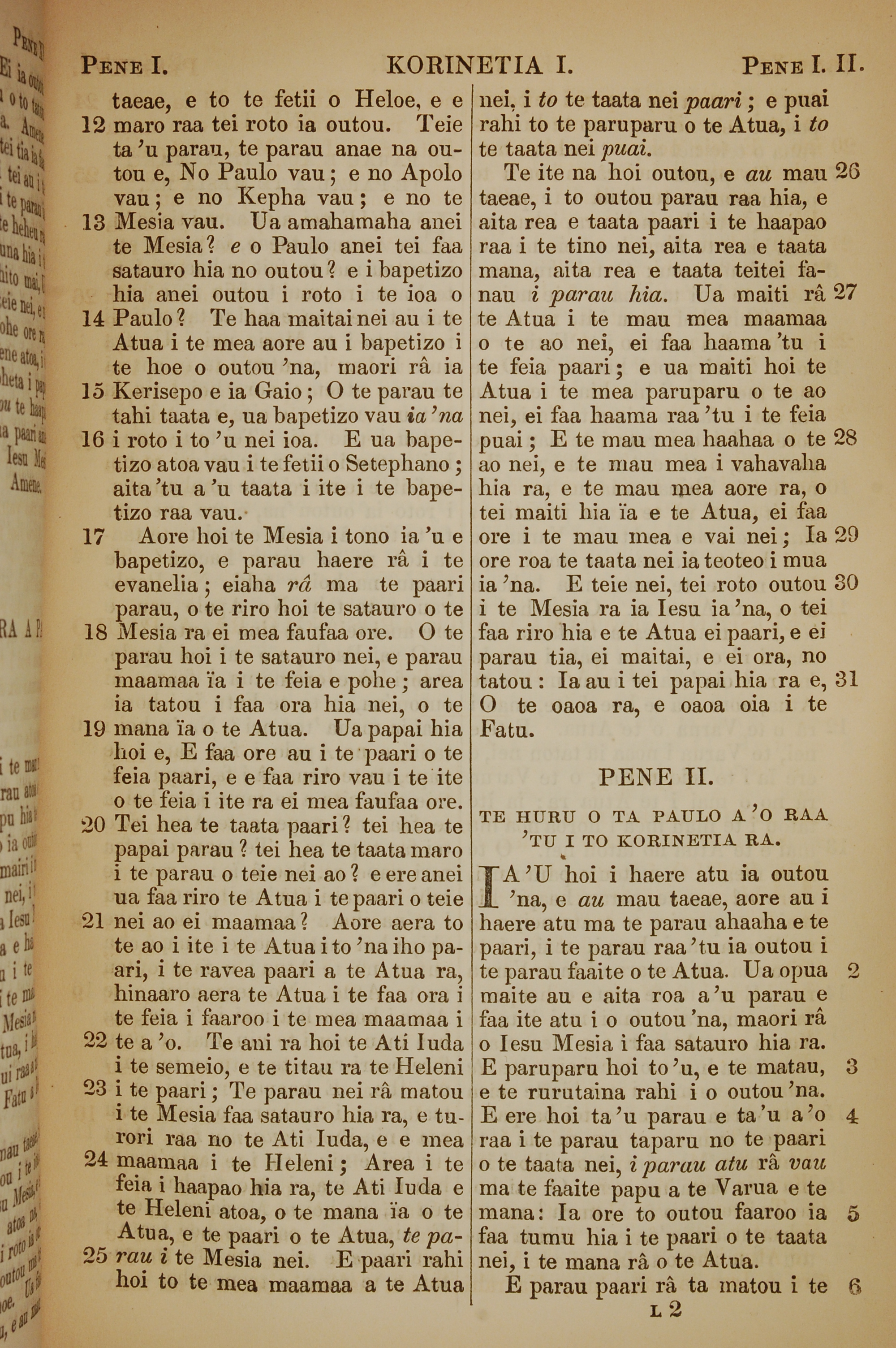 1853年塔希提語新約全書 哥林多前書 1 章 12 節到 2 章 6 節