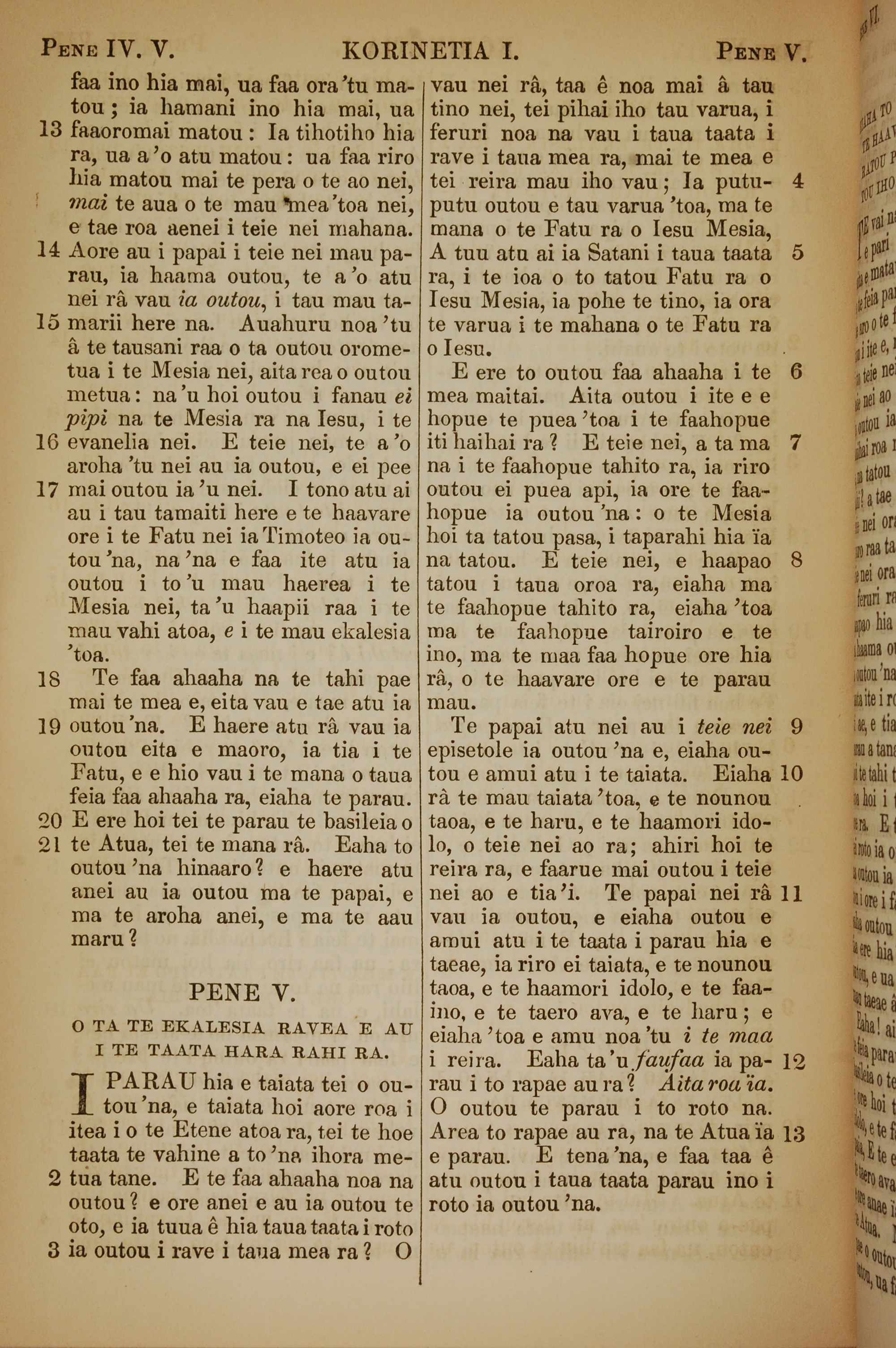 1853年塔希提語新約全書 哥林多前書 4 章 13 節到 5 章 13 節