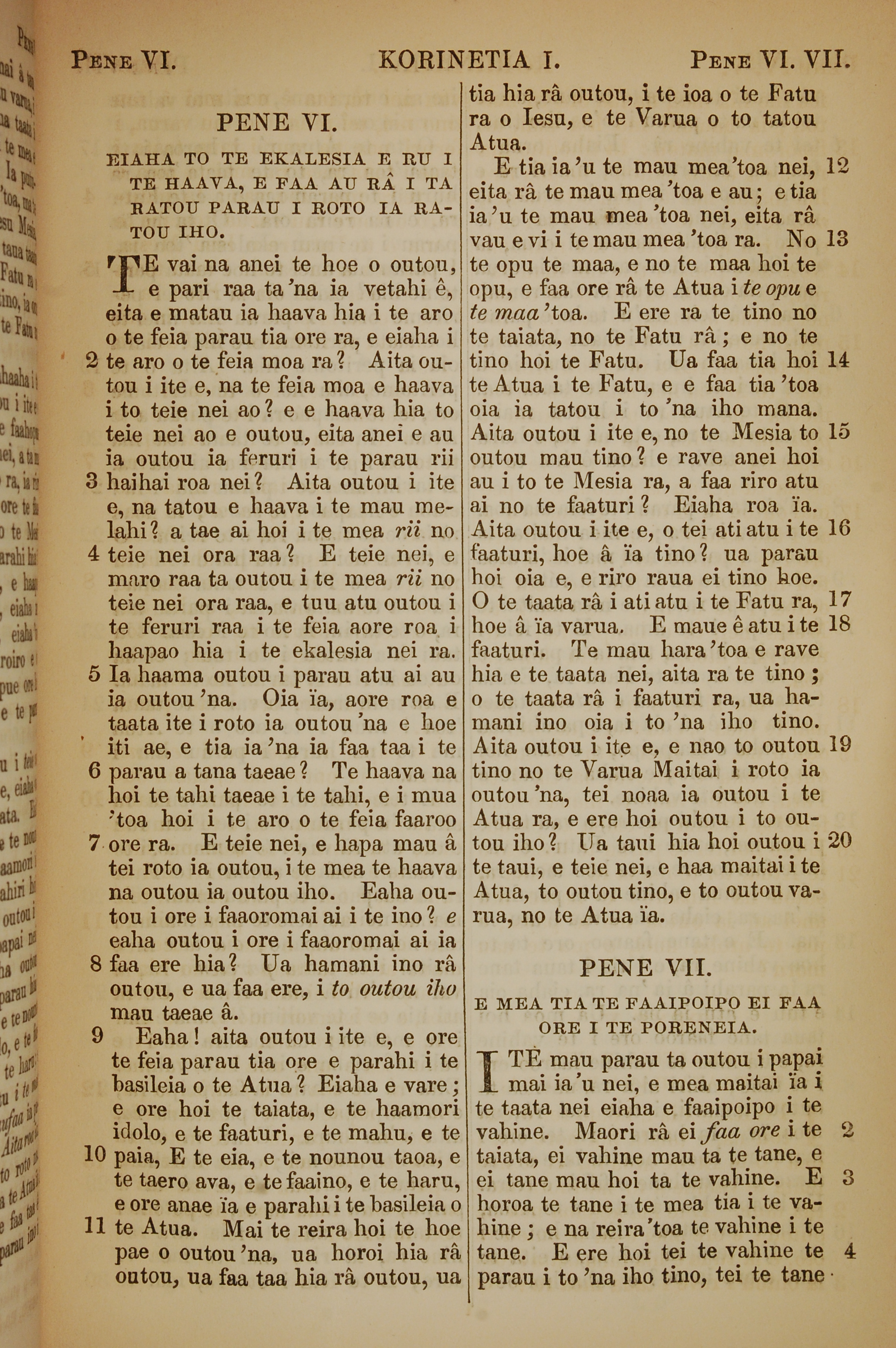 1853年塔希提語新約全書 哥林多前書 6 章 1 節到 7 章 4 節