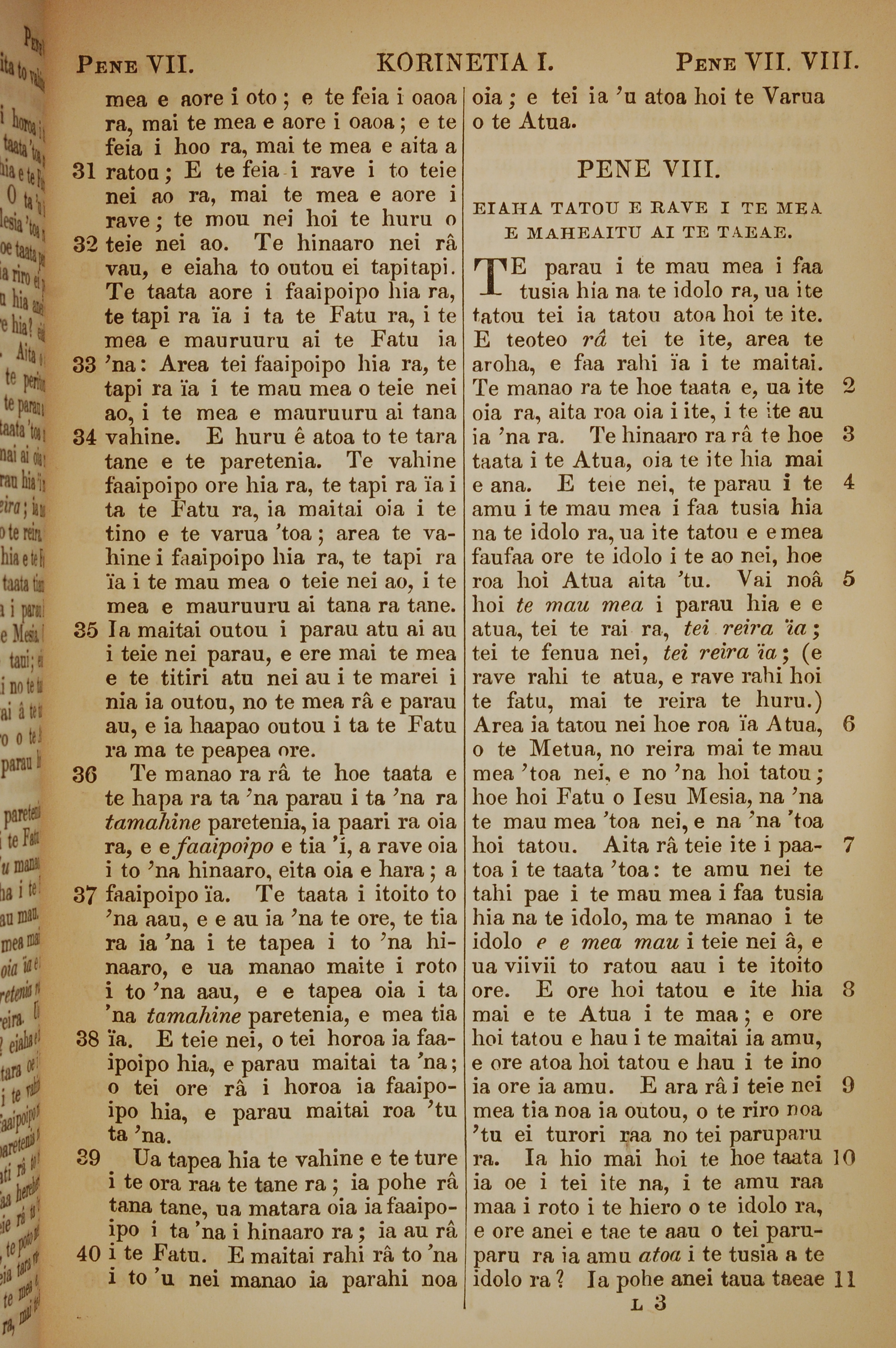 1853年塔希提語新約全書 哥林多前書 7 章 31 節到 8 章 11 節