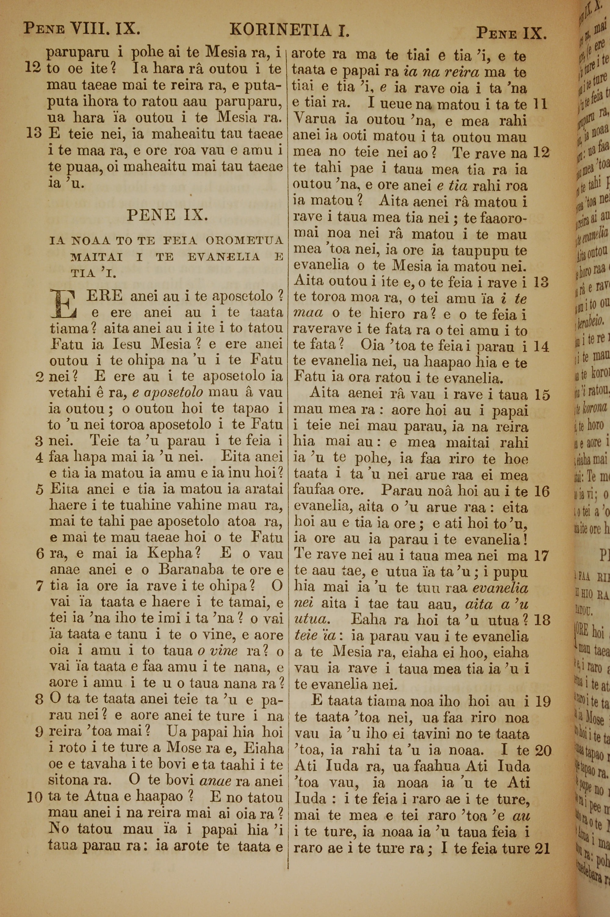 1853年塔希提語新約全書 哥林多前書 8 章 12 節到 9 章 21 節