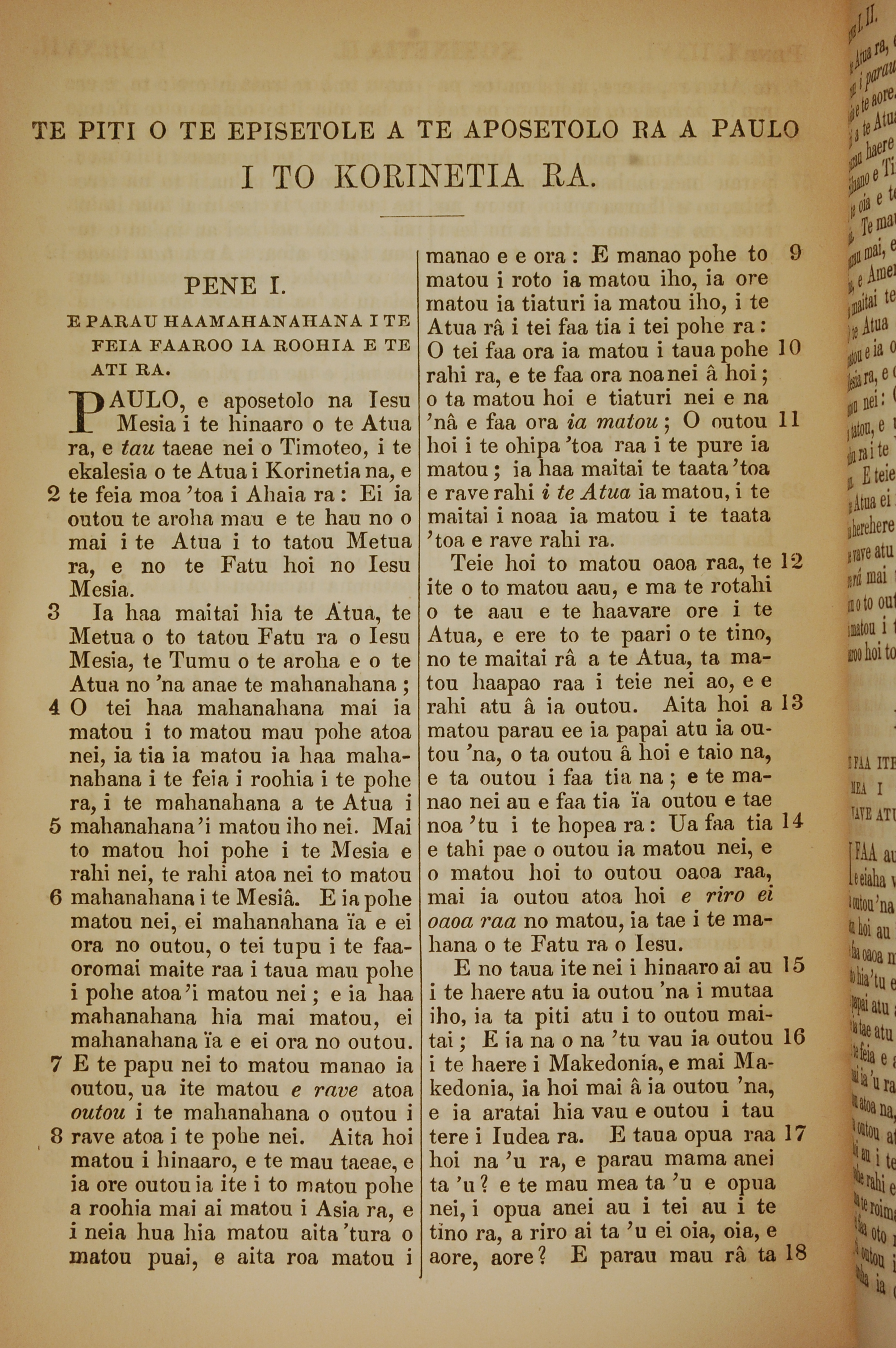 1853年塔希提語新約全書 哥林多後書 1 章 1 節到 1 章 18 節