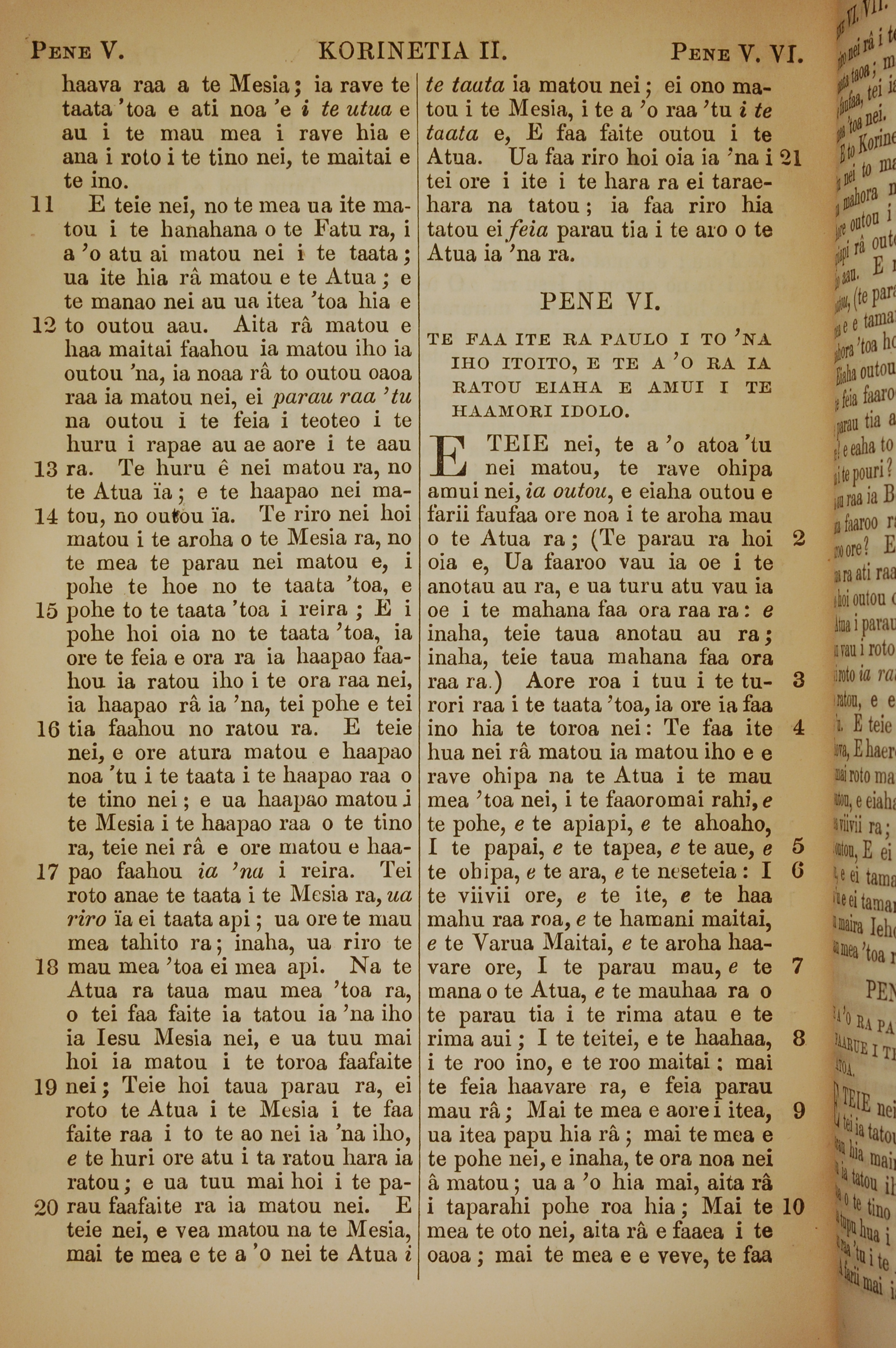 1853年塔希提語新約全書 哥林多後書 5 章 11 節到 6 章 10 節