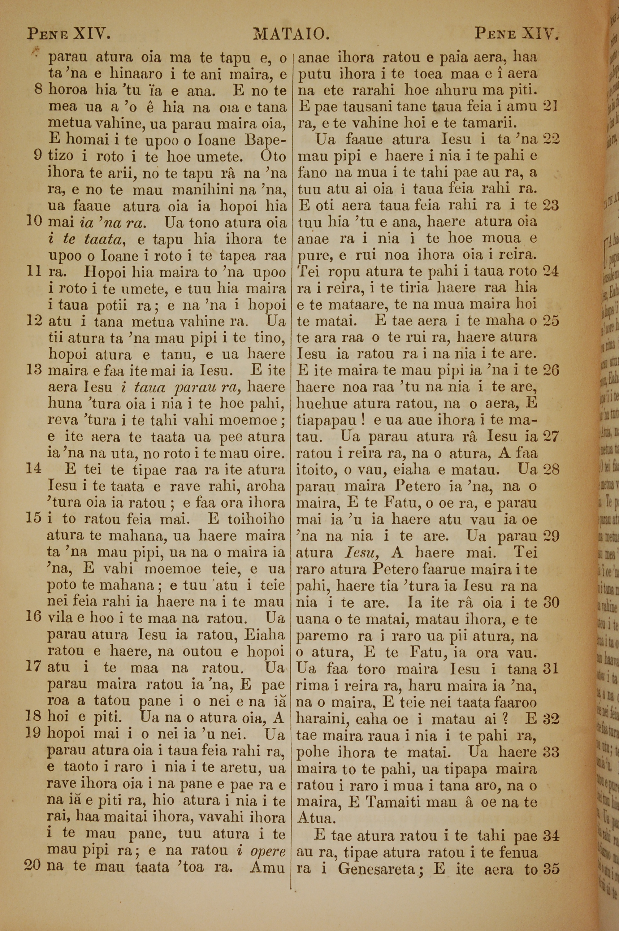 1853年塔希提語新約全書 馬太福音 14 章 8 節到 14 章 35 節