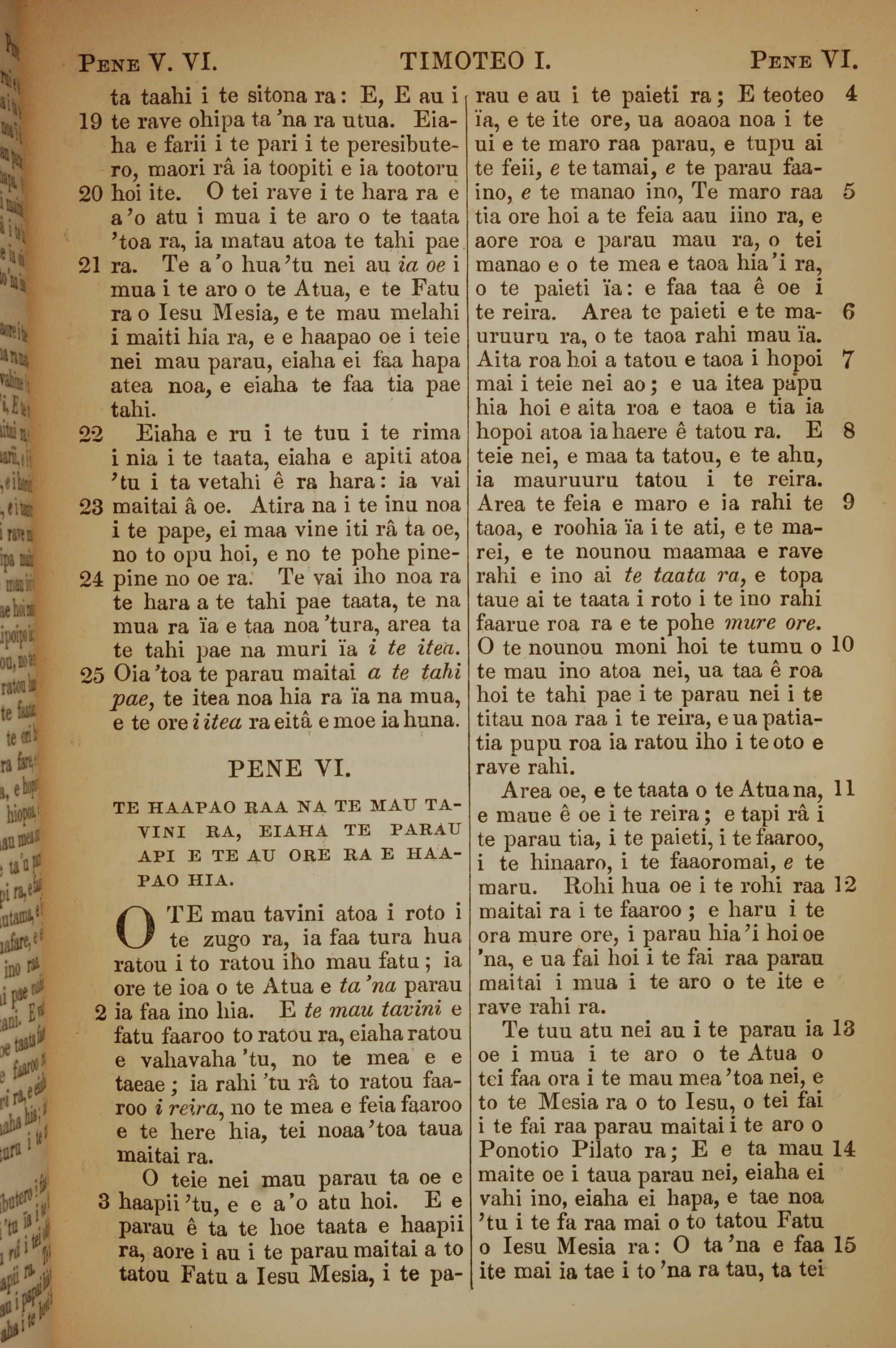 1853年塔希提語新約全書 提摩太前書 5 章 19 節到 6 章 15 節