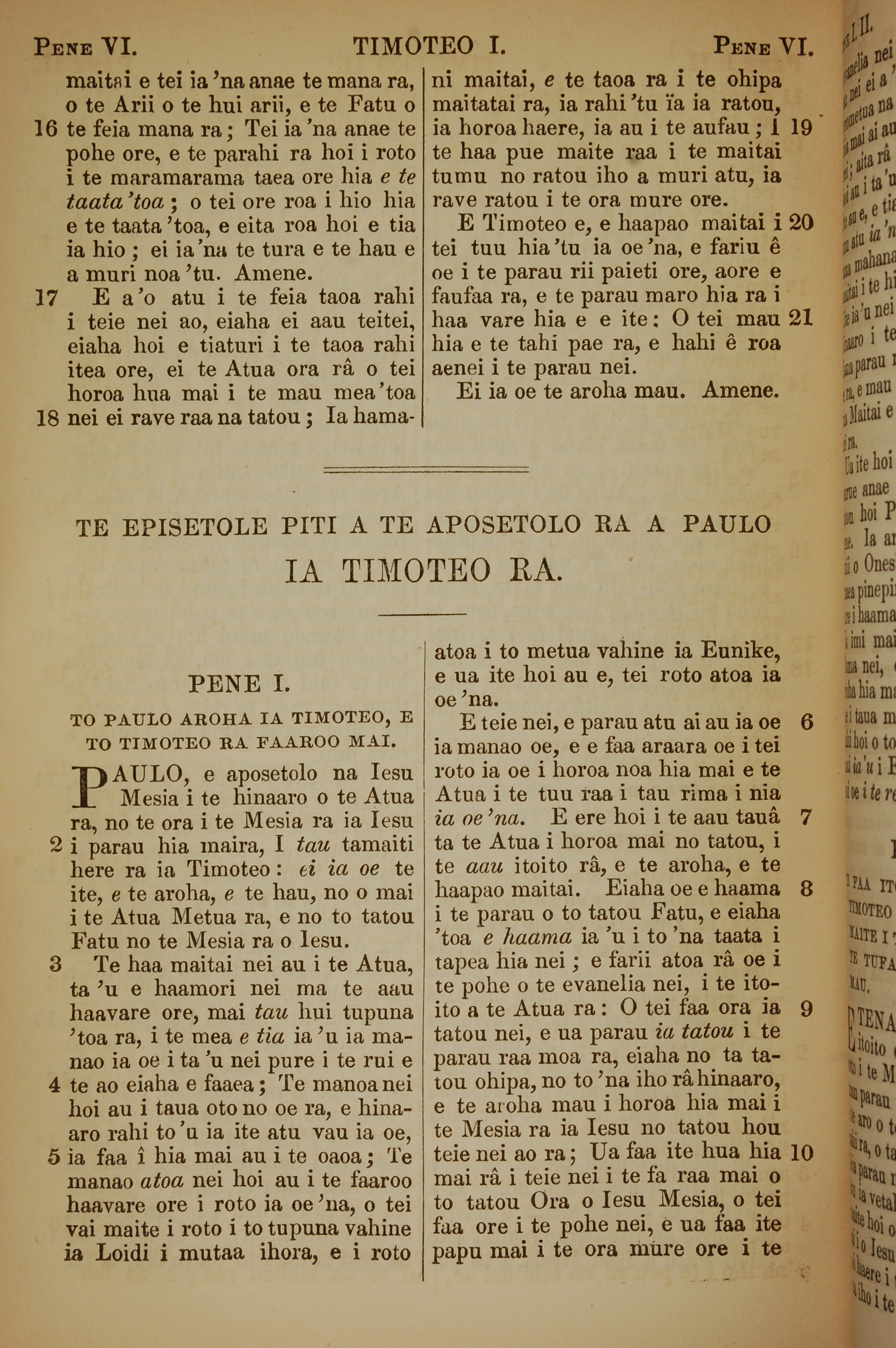 1853年塔希提語新約全書 提摩太後書 1 章 1 節到 1 章 10 節