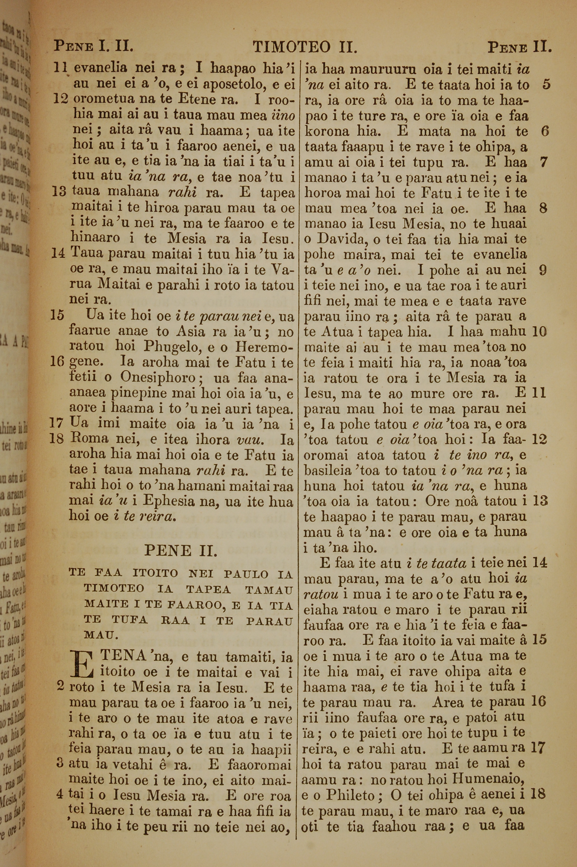 1853年塔希提語新約全書 提摩太後書 1 章 11 節到 2 章 18 節