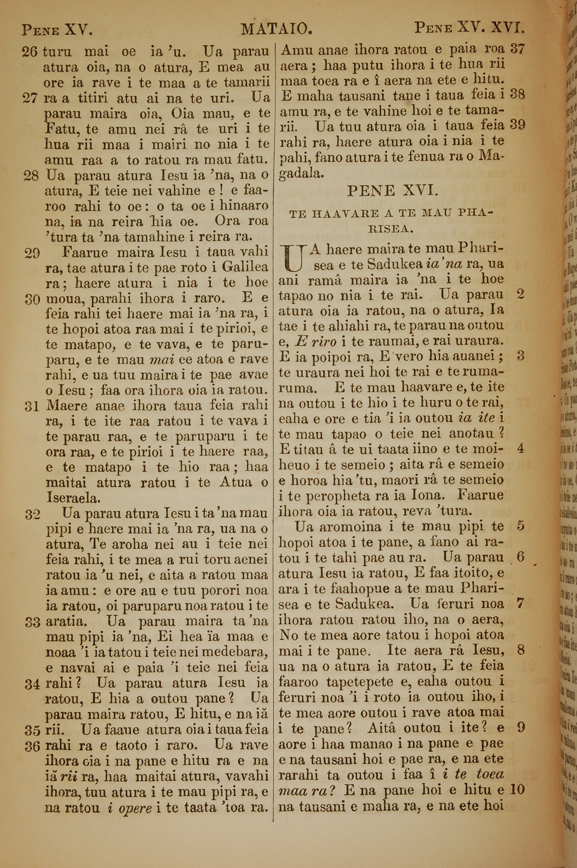 1853年塔希提語新約全書 馬太福音 15 章 26 節到 16 章 10 節