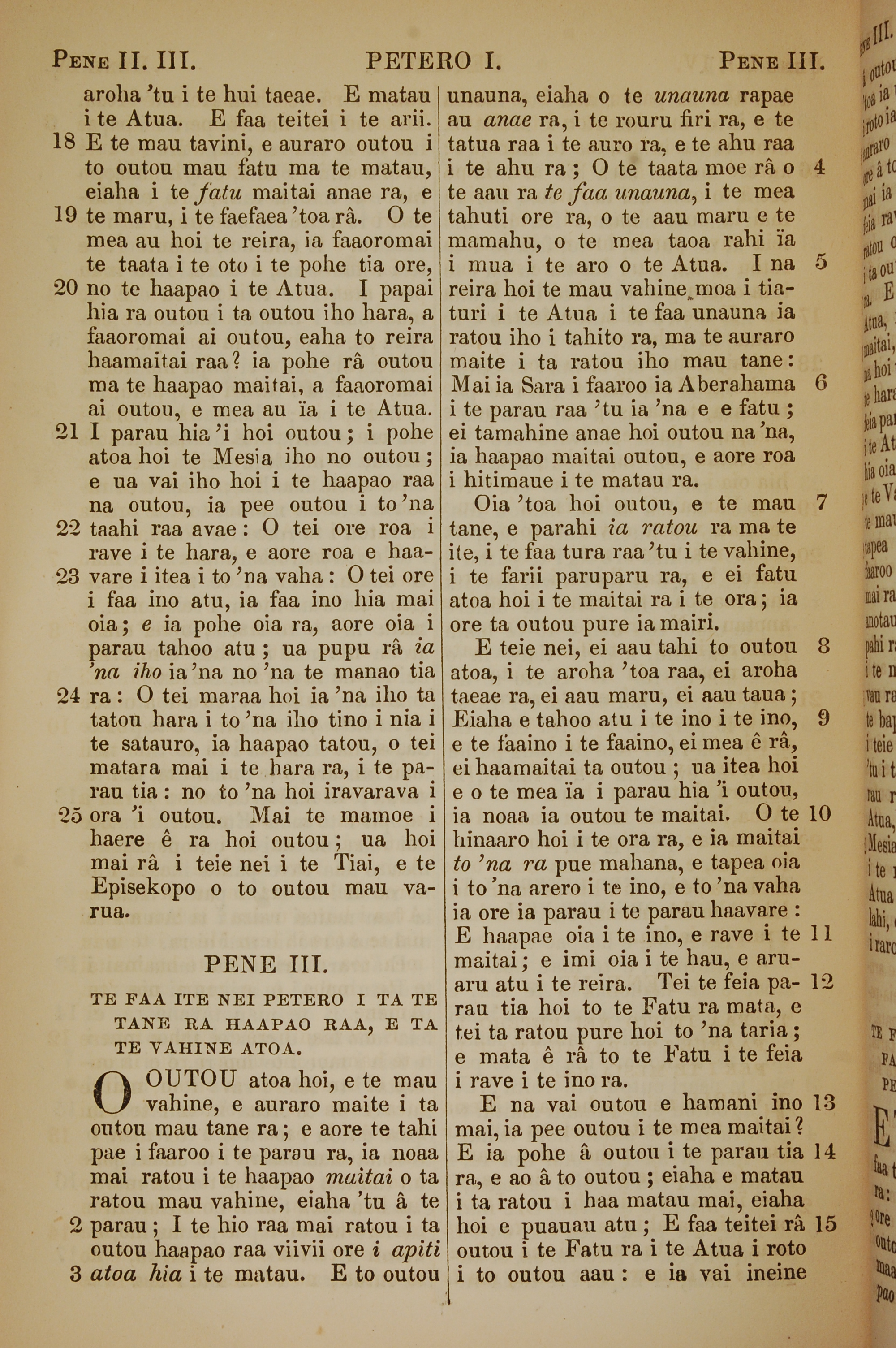 1853年塔希提語新約全書 彼得前書 2 章 18 節到 3 章 15 節