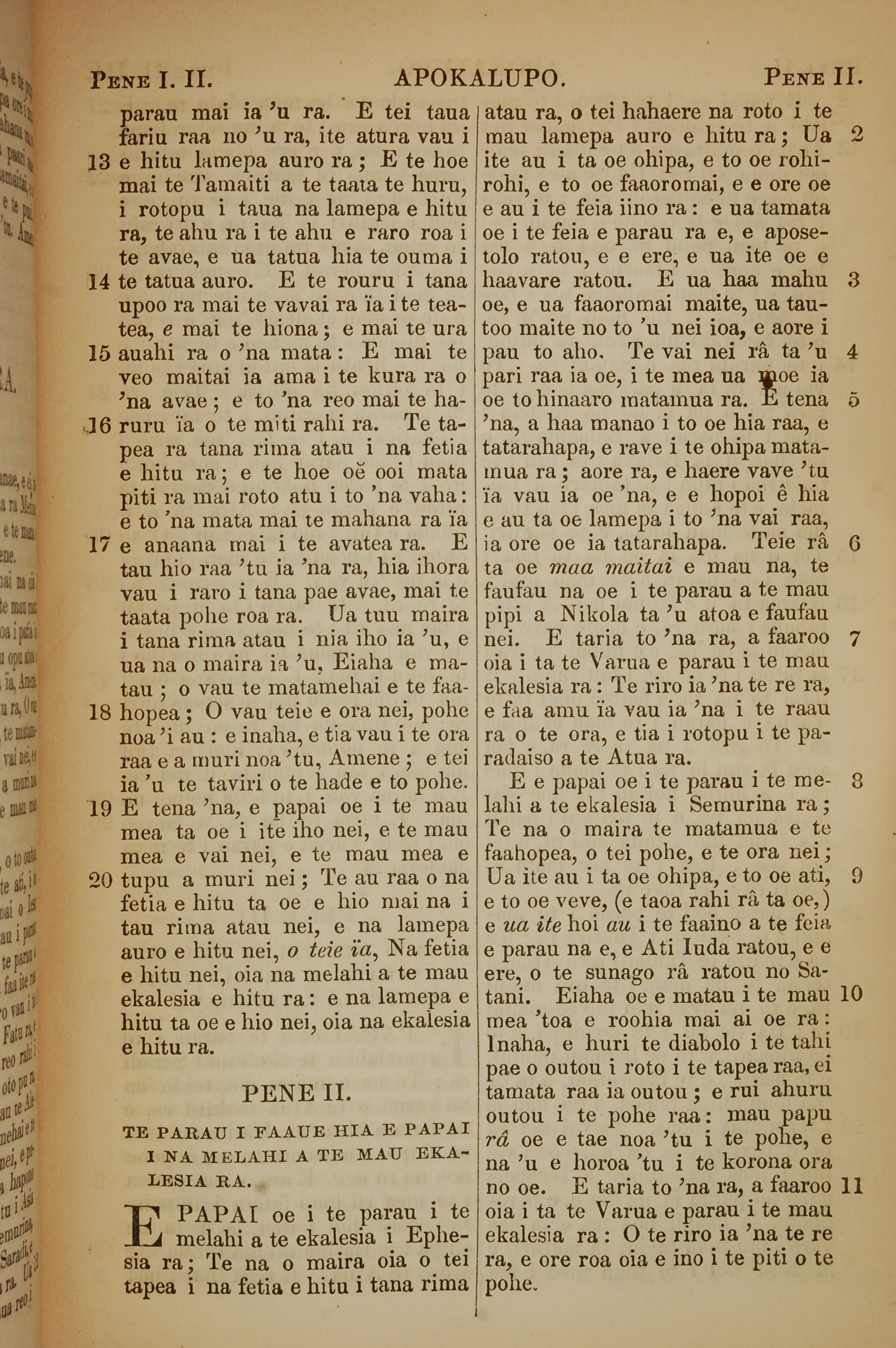 1853年塔希提語新約全書 啟示錄 1 章 13 節到 2 章 11 節
