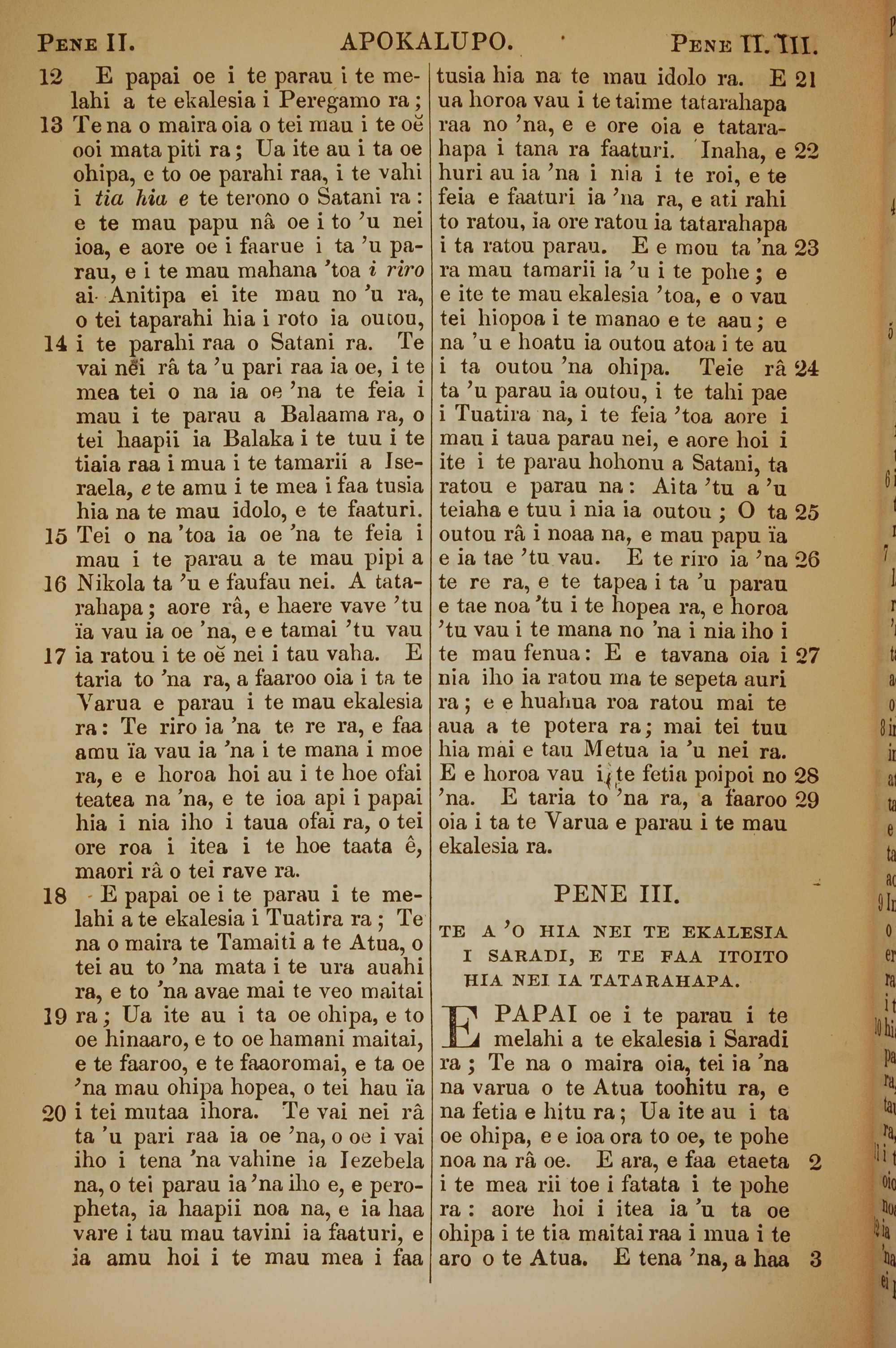 1853年塔希提語新約全書 啟示錄 2 章 12 節到 3 章 3 節