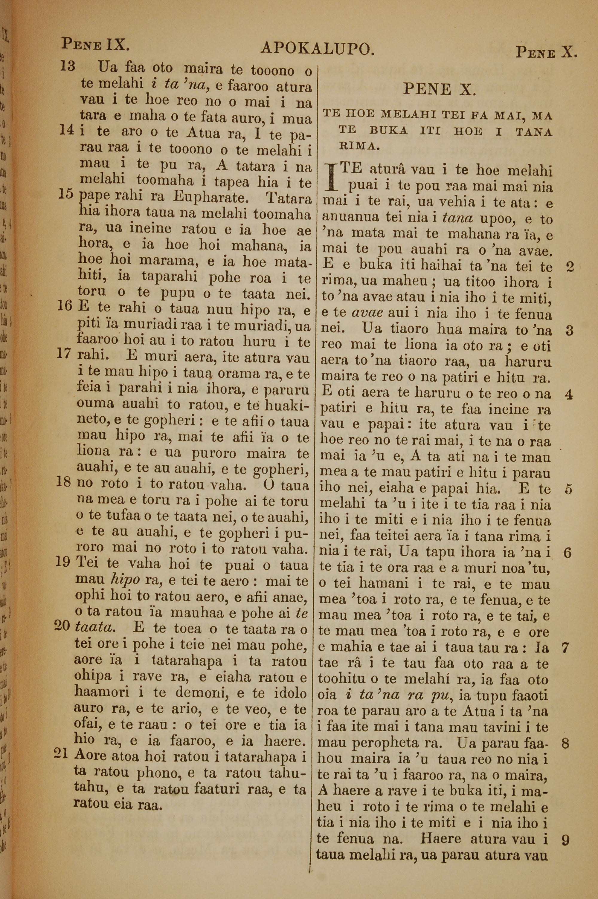 1853年塔希提語新約全書 啟示錄 9 章 13 節到 10 章 9 節