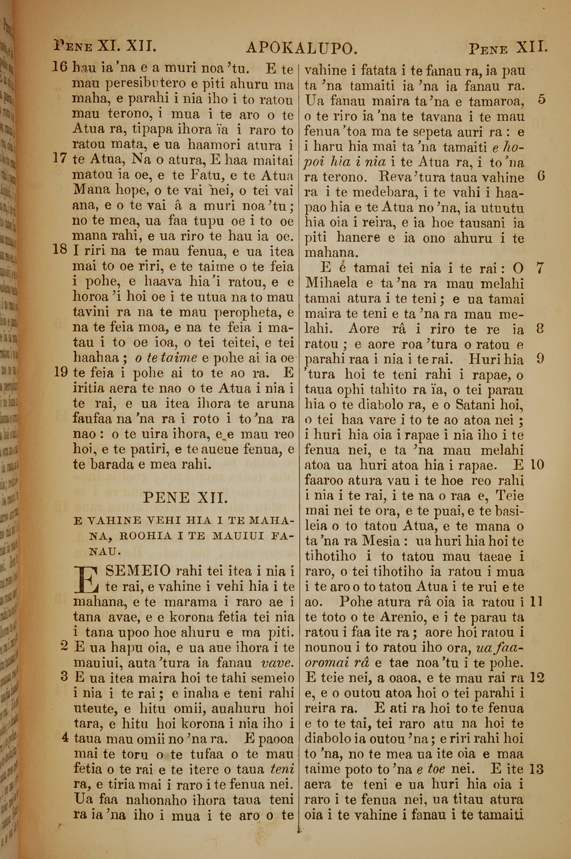 1853年塔希提語新約全書 啟示錄 11 章 16 節到 12 章 13 節