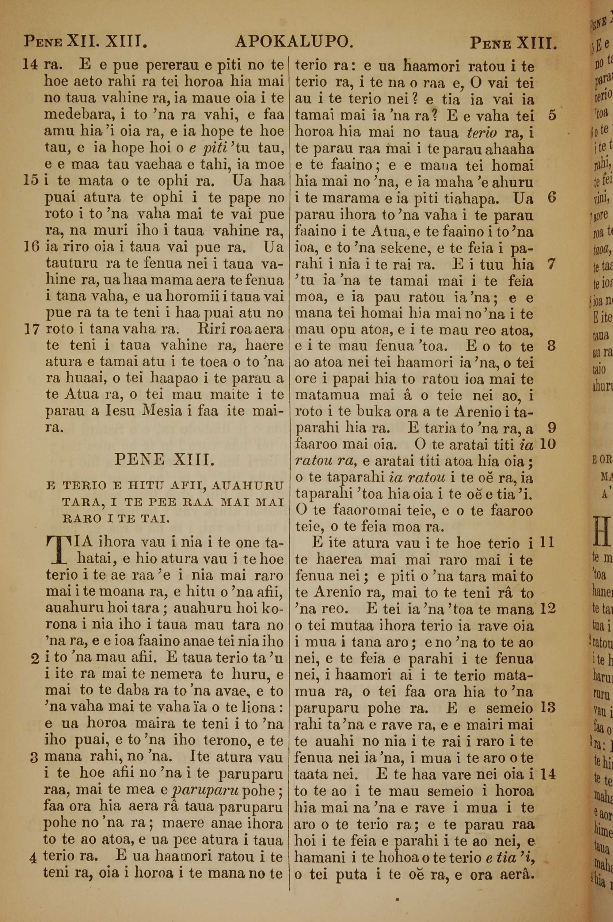 1853年塔希提語新約全書 啟示錄 12 章 14 節到 13 章 14 節