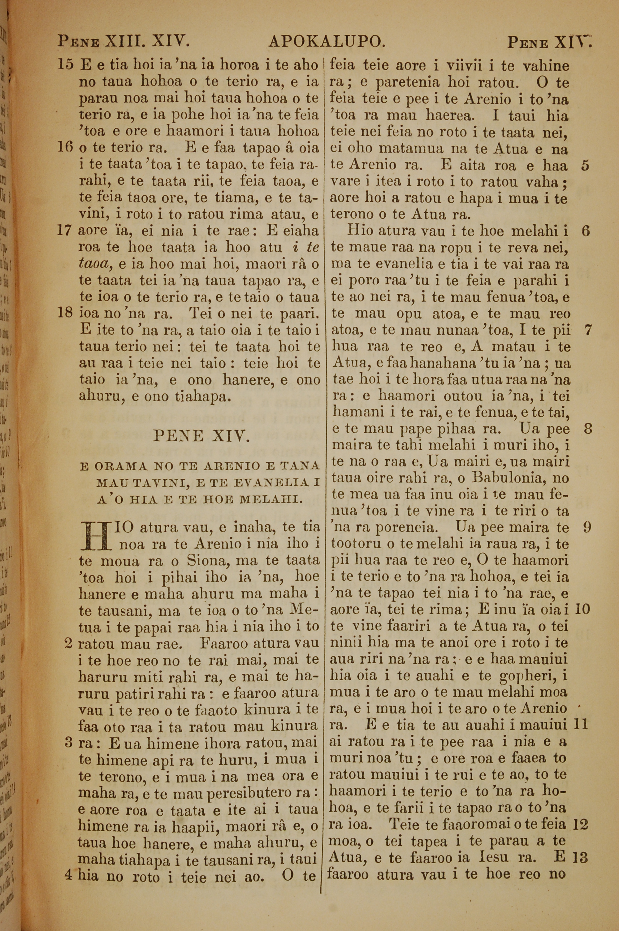 1853年塔希提語新約全書 啟示錄 13 章 15 節到 14 章 13 節