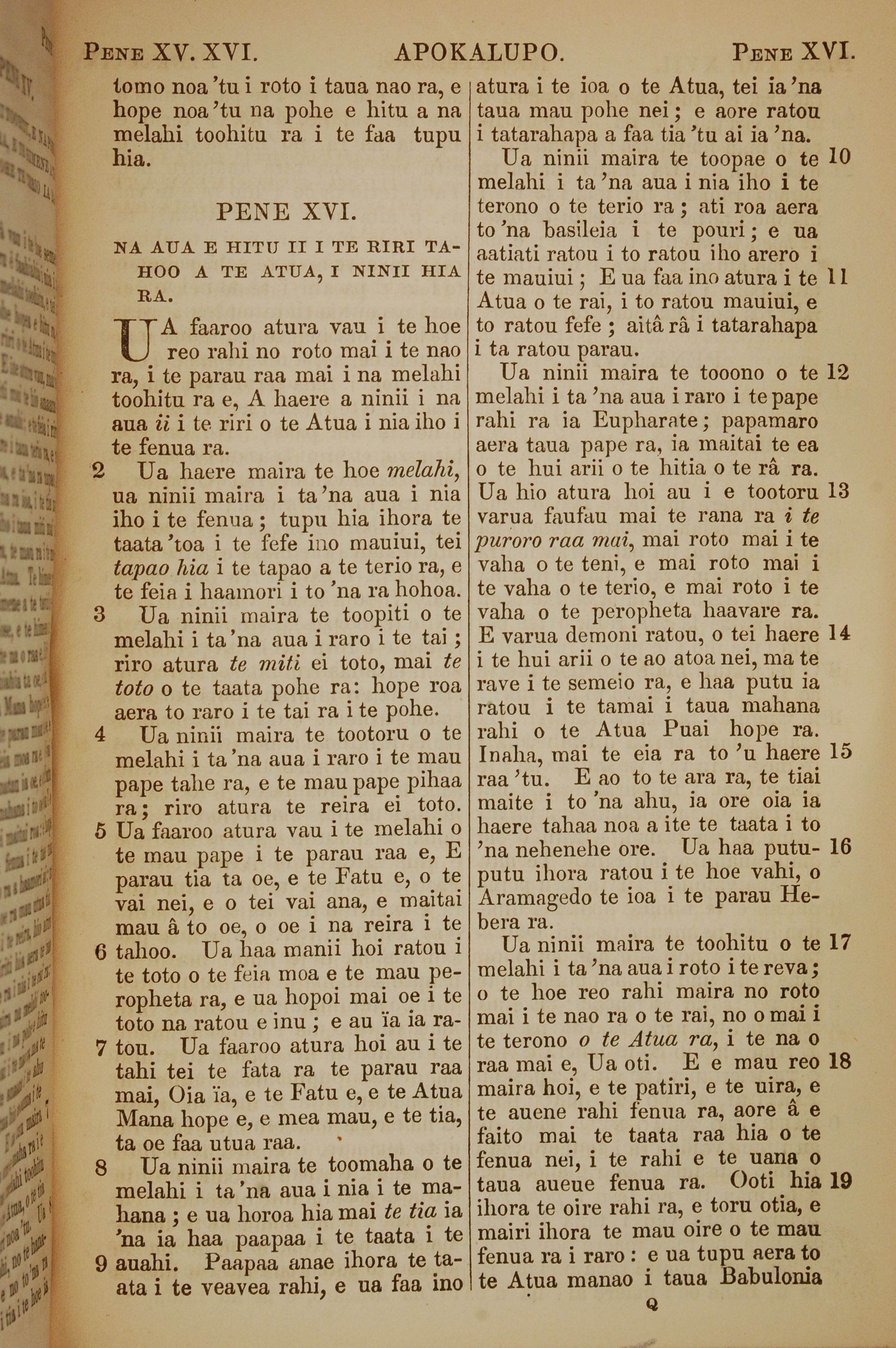 1853年塔希提語新約全書 啟示錄 16 章 1 節到 16 章 19 節