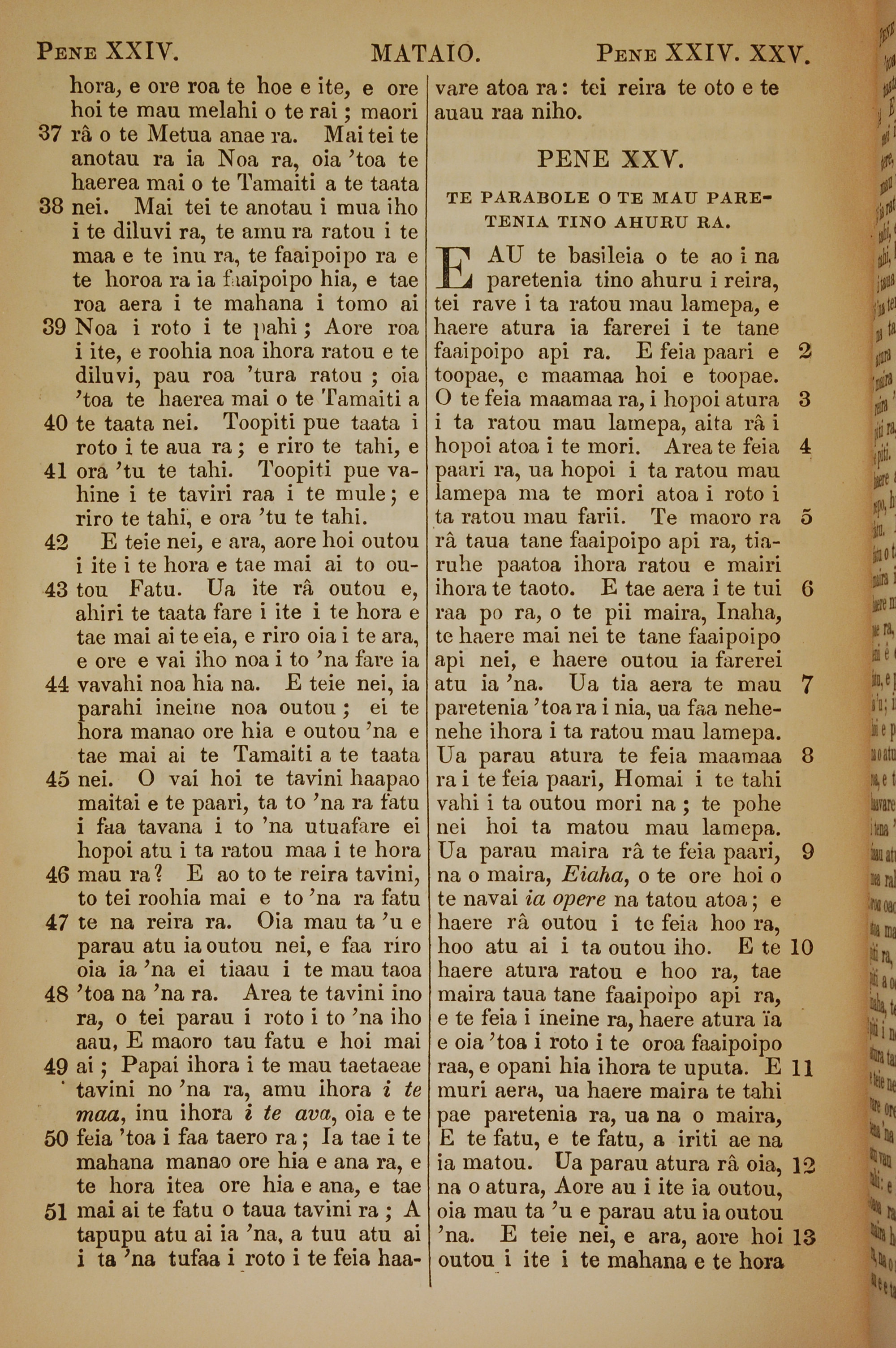 1853年塔希提語新約全書 馬太福音 24 章 37 節到 25 章 13 節
