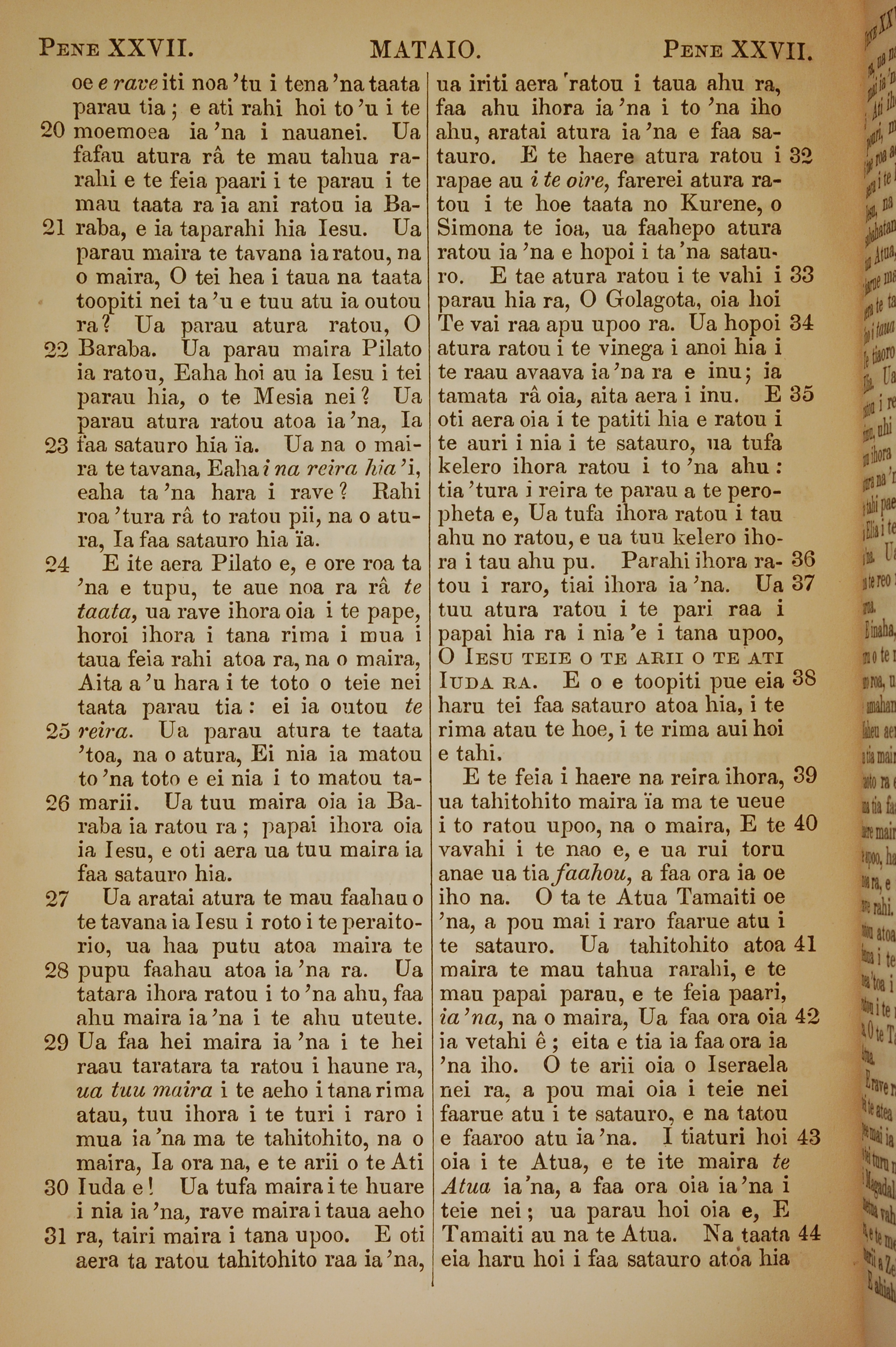 1853年塔希提語新約全書 馬太福音 27 章 20 節到 27 章 44 節