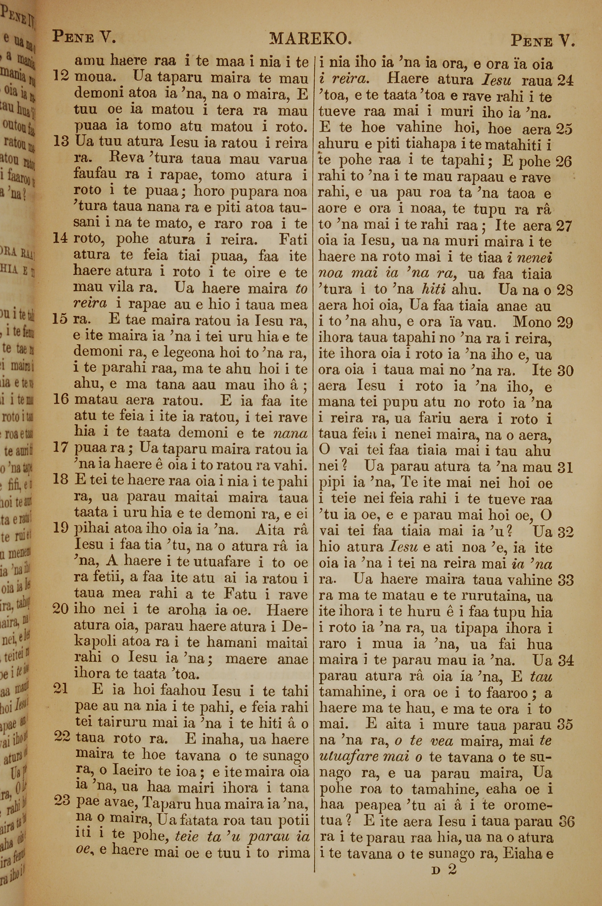 1853年塔希提語新約全書 馬可福音 5 章 12 節到 5 章 36 節