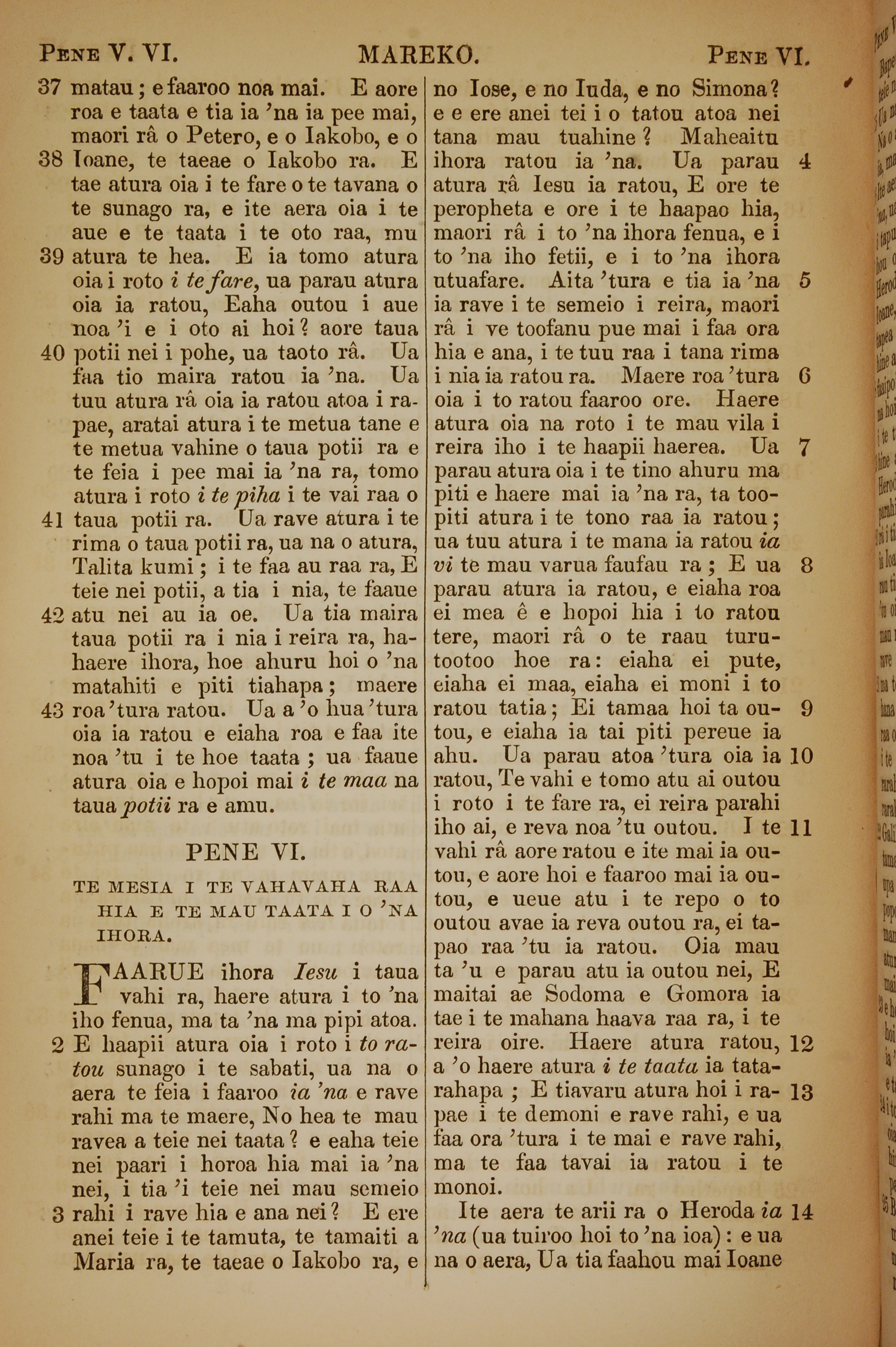 1853年塔希提語新約全書 馬可福音 5 章 37 節到 6 章 14 節