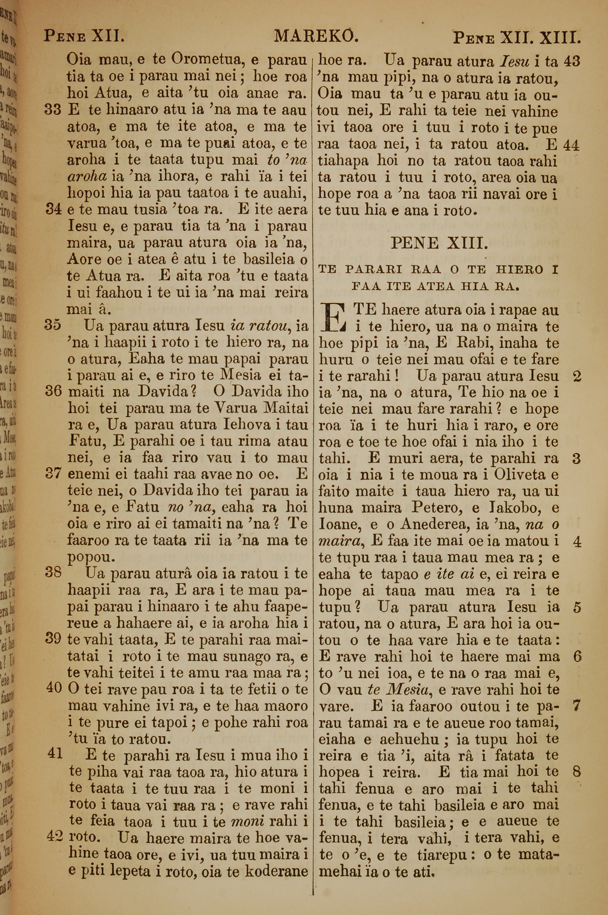 1853年塔希提語新約全書 馬可福音 12 章 33 節到 13 章 8 節
