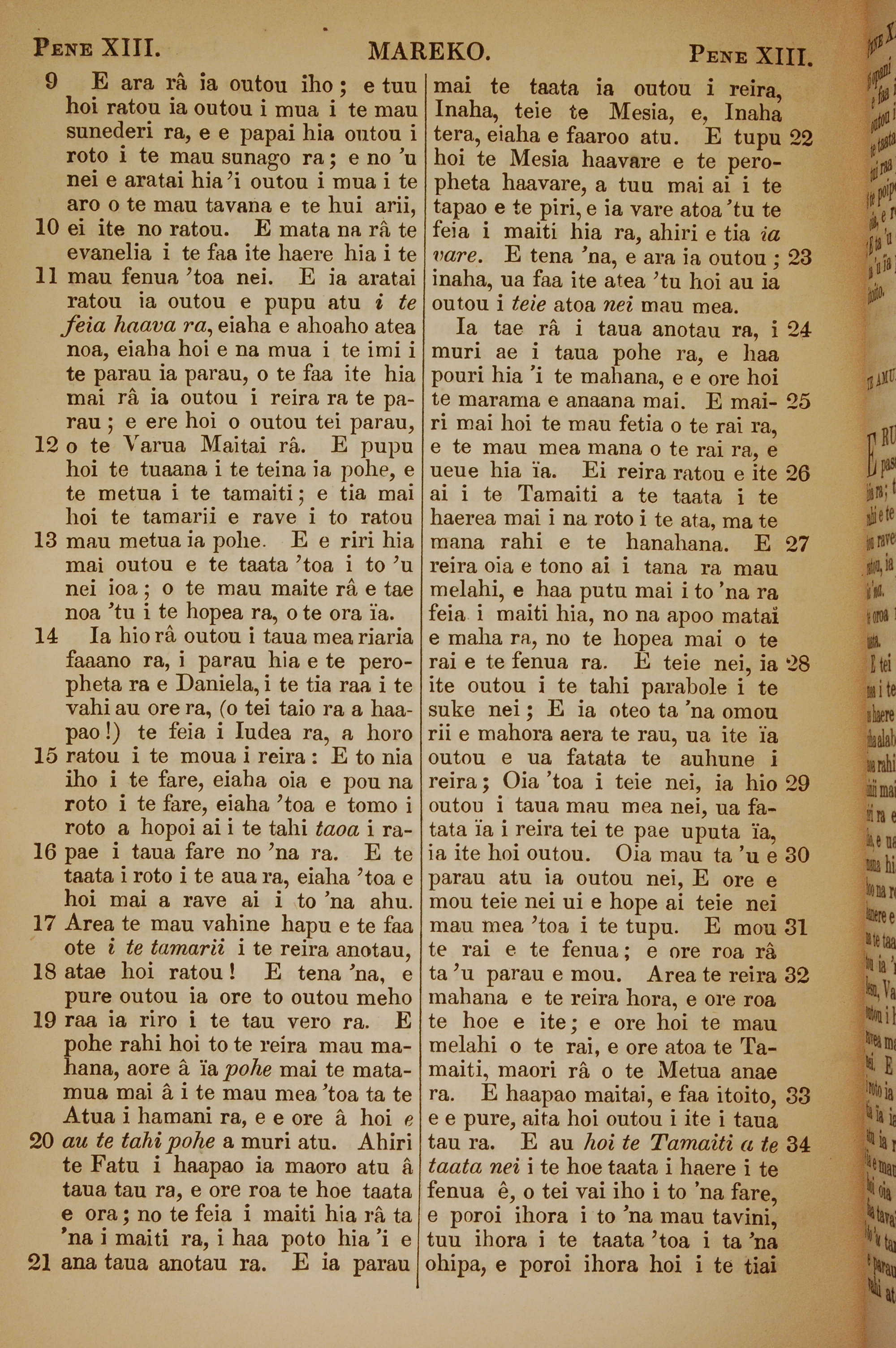1853年塔希提語新約全書 馬可福音 13 章 9 節到 13 章 34 節